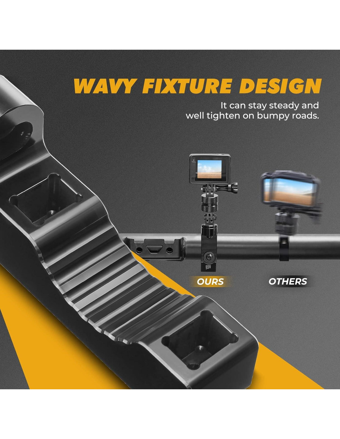 - Ángulo Omni-direccional 180/360 : Este soporte de manillar de cámara tiene un cuerpo rotatable 360, 2*180 ángulos de vista ajustables. Permite grabar en varios ángulos en todas las direcciones, buscando el mejor ángulo de vista que te pertenece, ya sea al aire libre o en interiores, grabará los momentos más maravillosos para ti