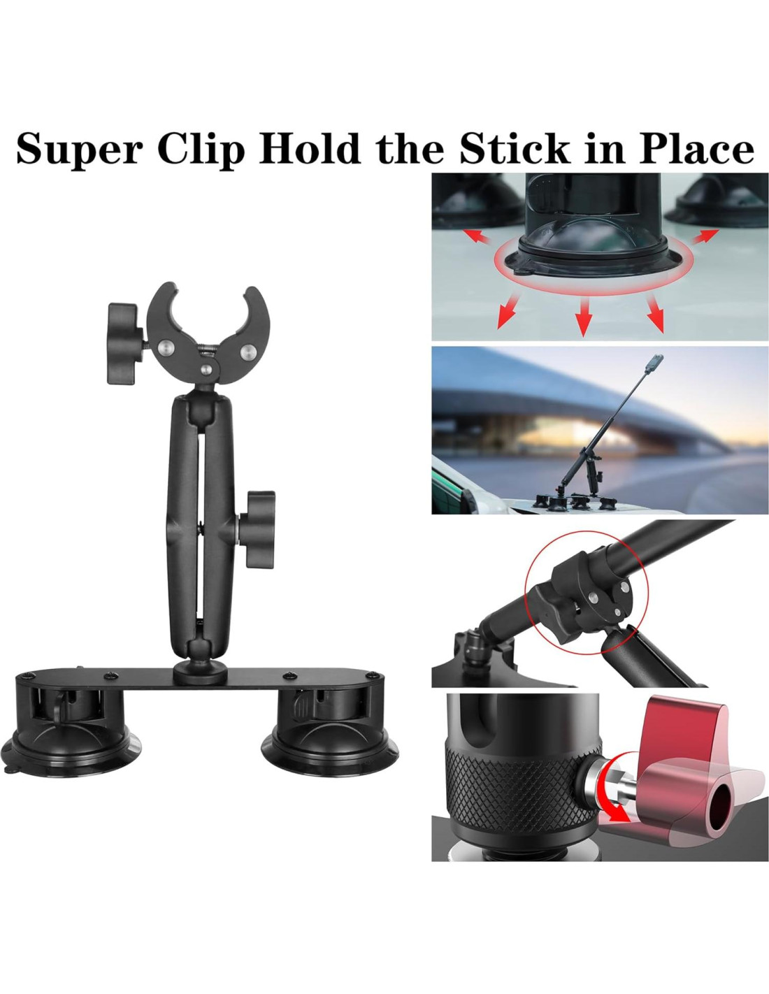 - Colocación Flexible de la Cámara. Se puede instalar en dos o tres planos diferentes, solo inclina ligeramente el brazo y ajusta el ángulo de la cabeza esférica. Duradero y firme, los brazos y cabezas esféricas están hechos de nuevos materiales compuestos; las ventosas están hechas de goma de alta calidad.