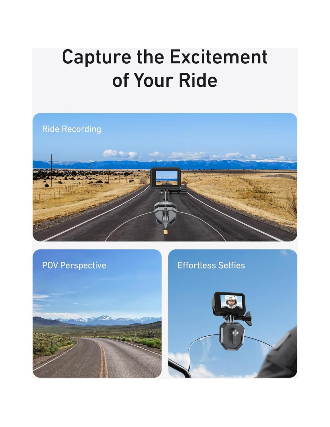 - [Captura tus aventuras de conducción] Nuestra abrazadera para parabrisas de motocicleta te permite conectar varias cámaras de acción disponibles en el mercado. Captura impresionantes imágenes desde diferentes ángulos para documentar tus experiencias en bicicleta.