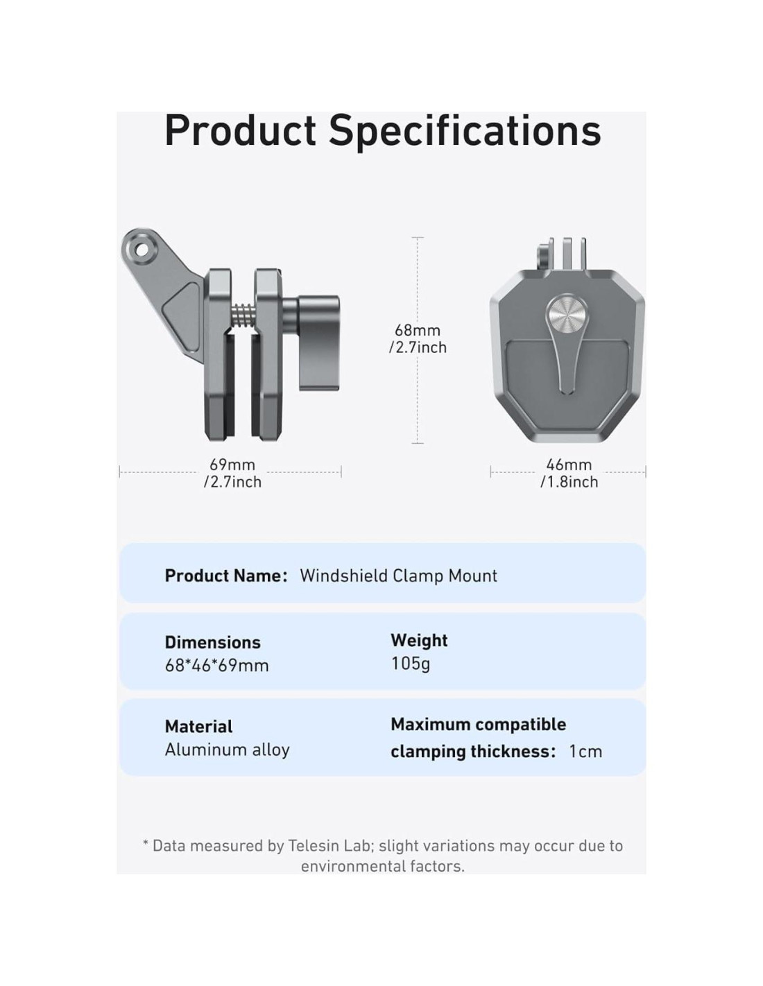 Nuestro soporte de abrazadera para parabrisas de motocicleta para cámaras de acción te permite capturar y revivir tu paseo mientras mantienes la diversión y la emoción de conducir. Viene con una hebilla base y un orificio de tuerca de 1/4 para mayor compatibilidad y flexibilidad en las opciones de montaje. Hecho de aleación de aluminio de alta calidad, este soporte de cámara de clip proporciona una amplia gama de compatibilidad y excelente fuerza de agarre para mantener tu paseo estable y duradero. Monta tu cámara deportiva en el parabrisas de tu motocicleta para grabar tus emocionantes momentos de conducción y recordar la diversión de conducir. Experimenta una versatilidad inigualable con nuestra característica de ángulo ajustable de 180, diseñada para facilitar la captura de la toma perfecta. Nuestros soportes están diseñados para ser universalmente compatibles con una amplia gama de cámaras de acción, asegurando que puedas capturar cada momento sin limitaciones. Nuestro soporte adopta un diseño de almohadilla de silicona gruesa de doble capa, con un grosor máximo de sujeción de hasta 1 CM, asegurando que tu equipo esté estable y no se afloje. Con un diseño ligero, este soporte de cámara de clip para parabrisas asegura durabilidad y portabilidad. Operación simple: solo aprieta para asegurar. ¿Sufre de sacudidas severas mientras ciclas? Si lo estás usando en un parabrisas de motocicleta por primera vez, sugerimos hacer algunos paseos cortos y lentos primero para asegurarte de que esté seguro y después de una instalación estable. ¿Cuáles son las cámaras de acción deportiva que se podrían usar con este soporte de clip? Compatible con GoPro Hero 13 12 11 10 9 8 7, Insta360 X4 X3 X2 X ONE RS R, DJI Osmo Action. ¿Este soporte para parabrisas de motocicleta está equipado con un gimbal roscado de 1/4? Sí, por supuesto que estamos equipados.