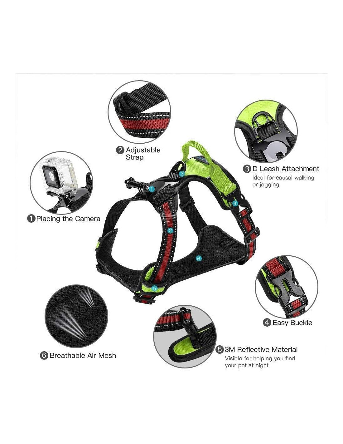 - [Fácil de Usar] - Este arnés para mascotas con un diseño simple y hebillas de clic rápido que facilitan ponerlo y quitarlo. Correas totalmente ajustables en el pecho y el cuello, que permiten un ajuste personalizado para tu mascota. Deslízalo, ciérralo y simplemente ajusta, y está listo para usar, sin miedo a rozaduras y fricciones. Sin tirones y libre de asfixia. Recibirás: 1 x Correa de Arnés para Perros, 1 x Tornillo de Pulgar Largo, 1 x Llave. NOTA: La caja impermeable GoPro no estará incluida.