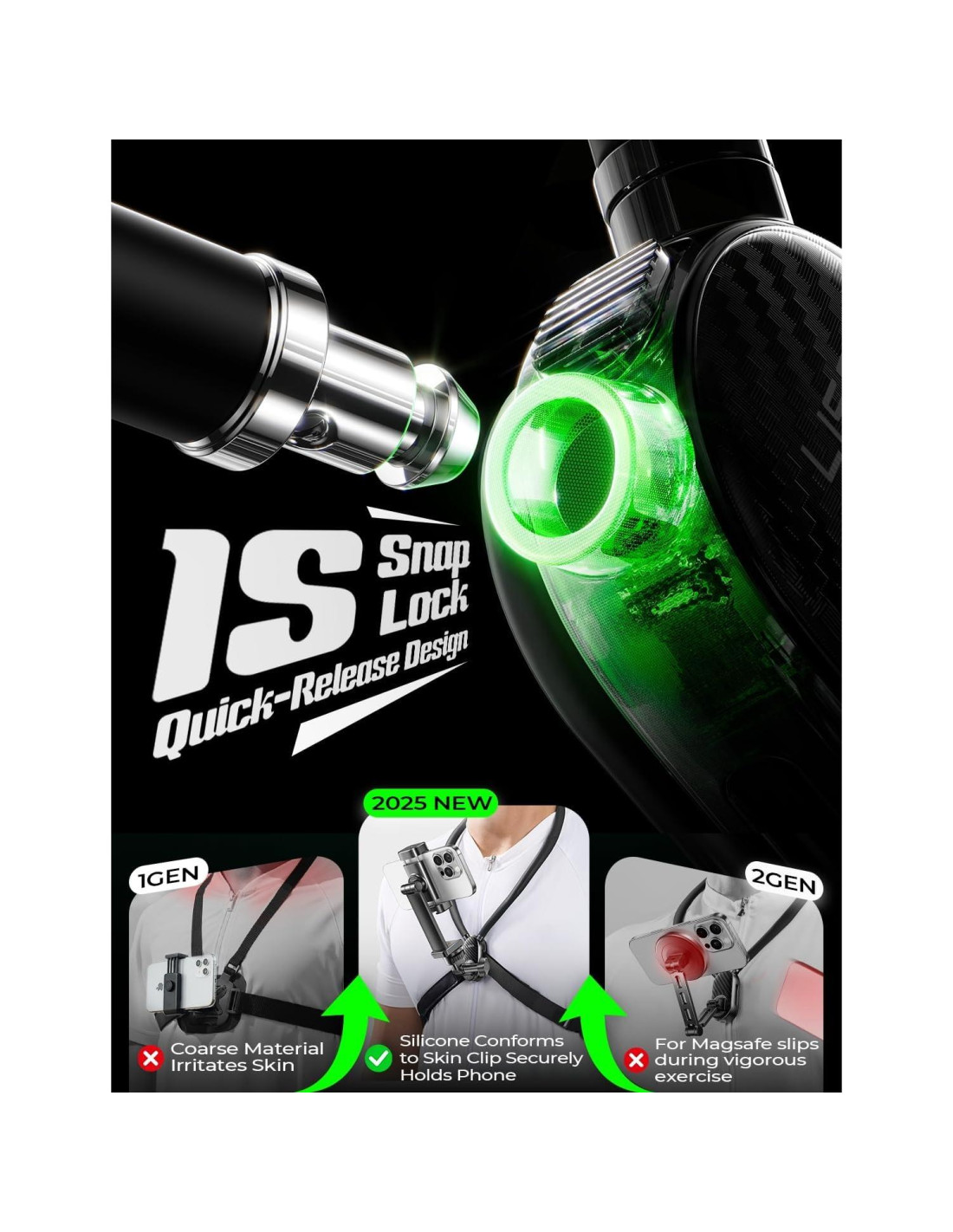 - Mayor Comodidad para Uso Prolongado: A diferencia del soporte para teléfono en el pecho, siempre priorizamos la comodidad primero. En lugar de rígido nylon ABS (que se clava en el cuello/clavícula), usamos silicona suave y amigable con la piel para un uso prolongado-ideal para transmisiones en vivo largas, viajes o uso diario. El soporte ergonómico para el cuello protege tu piel sin sacrificar funcionalidad