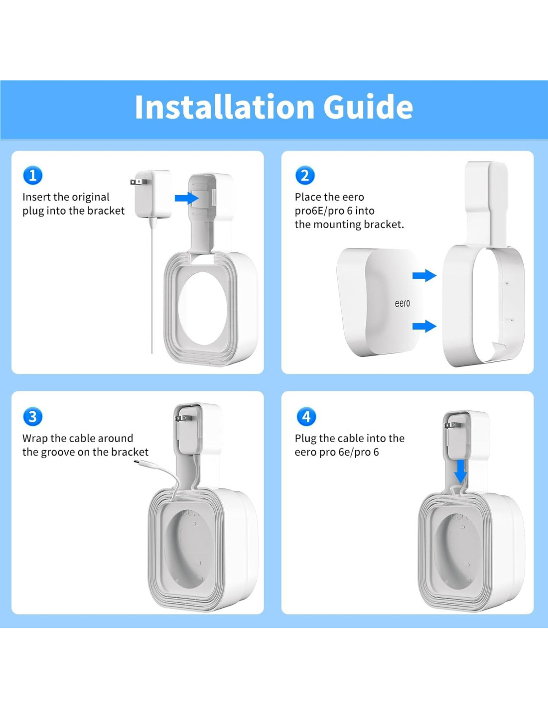 - ¿Qué Recibirás?: 1 Soporte de Montaje en Pared para eero Pro 6e/Pro 6. Si tienes alguna pregunta, no dudes en contactarnos, y responderemos lo antes posible.