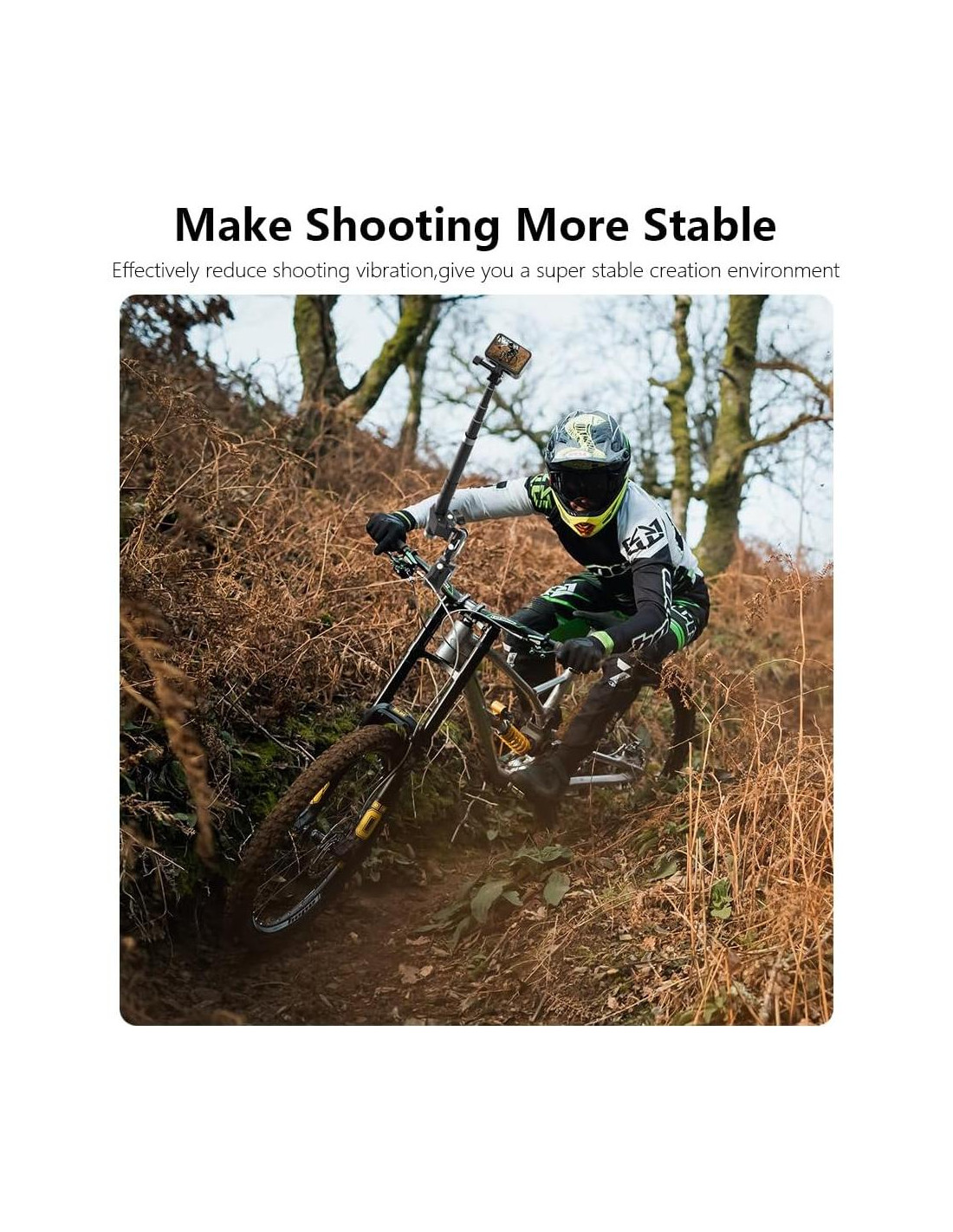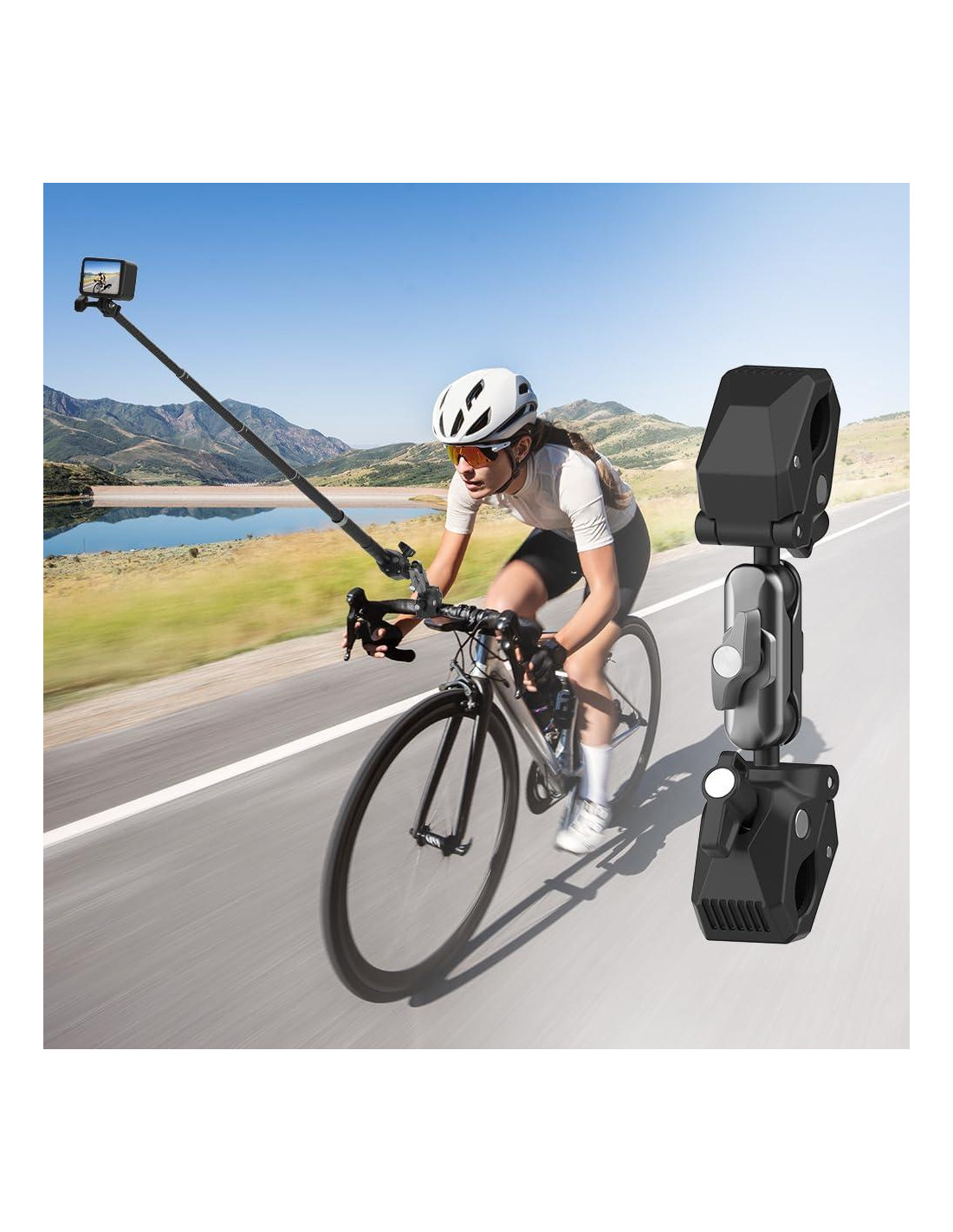 - [Accesorios de Montaje para Cámara de Acción de 360 Grados] Sistema de doble abrazadera con juntas giratorias de 360 grados permite posicionamiento de múltiples ángulos. Filma tomas en primera persona desde manillares, captura acción de retrovisor con palo de extensión, o monta en rieles de kayak - ideal para motor-vlogging/senderos de MTB/aventuras fuera de carretera