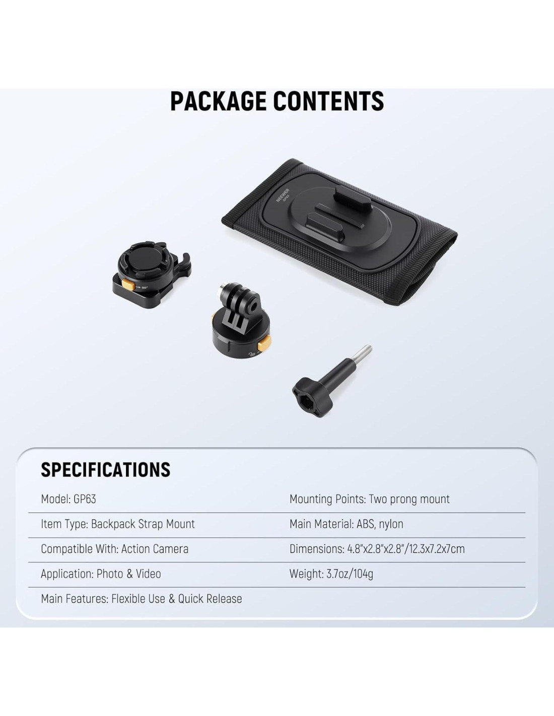 - [Compatibilidad con Cámara de Acción] El soporte de mochila es compatible con GoPro Max go pro Hero 13 12 11 10 9 8 7 Black compatible con DJI Osmo Action 5 Pro 4 3 2, también para montaje de 2 pines compatible con Insta360 X5 X4 X3 Insta 360 Ace Pro y más, kit de accesorios ideal y paquete de montaje para tomas aéreas, vlogging, transmisión en vivo, grabación de video POV al aire libre y otra fotografía y videografía como equipo esencial para creadores de contenido e influencers