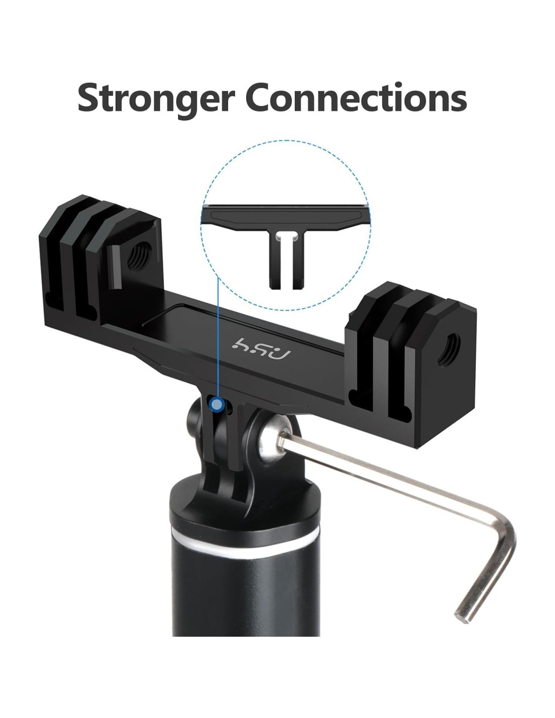 Adaptador de Trípode de Aluminio Doble Twin HSU y GoPro para GoPro Hero 13/12/11/10/9/8/7/6, Montura de Monopie de Metal Mini 1/4-20 para AKASO Campark y Otras Cámaras de Acción