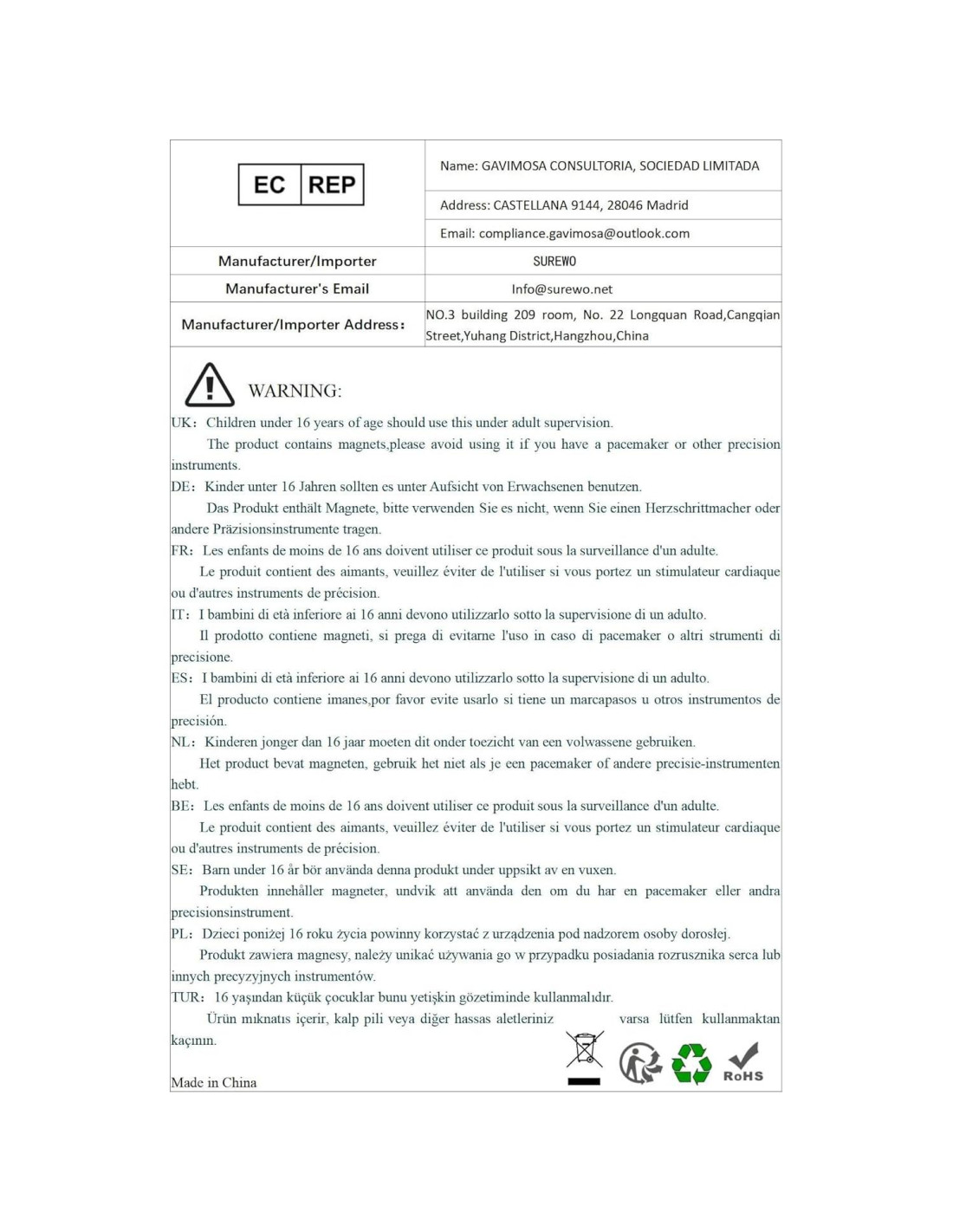 - Fabricante: SUREWO