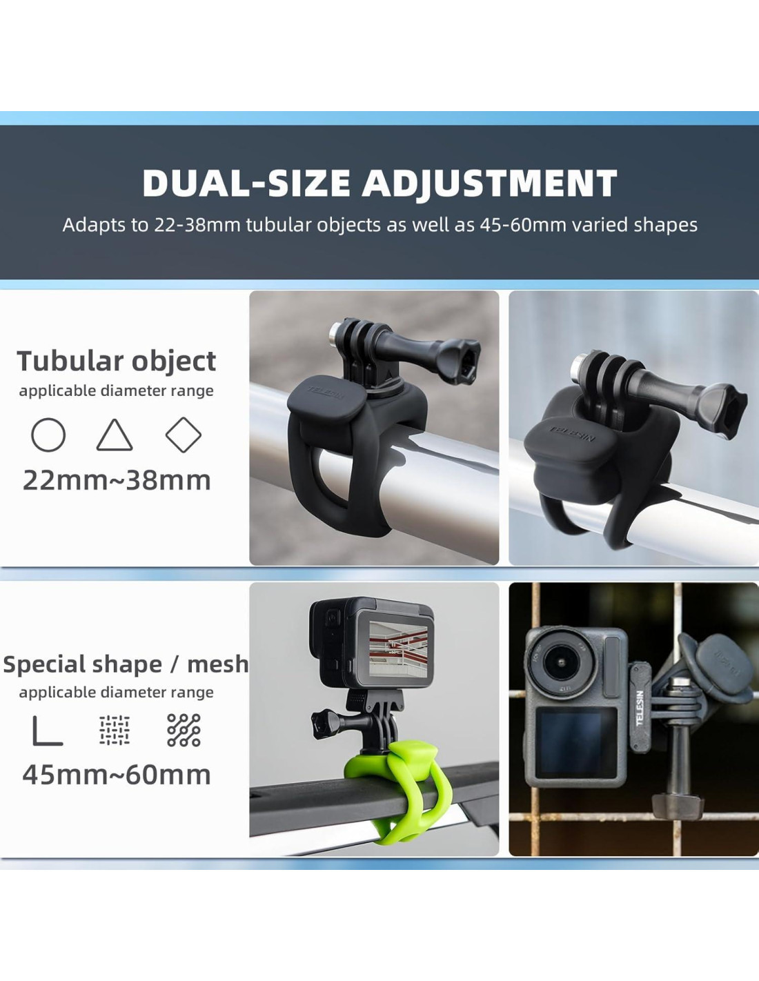 - VERSÁTIL PARA CADA AVENTURA - El diseño de montaje flexible es adecuado para una amplia gama de escenarios, incluyendo bicicletas, motocicletas, scooters, esquí, navegación, fitness, béisbol, pesca, cañas de pescar, cercas, ramas de árboles, kayaks, barriles, bastones de esquí, barras de rodillo y más. Sin restricciones por el entorno, desata tu potencial.