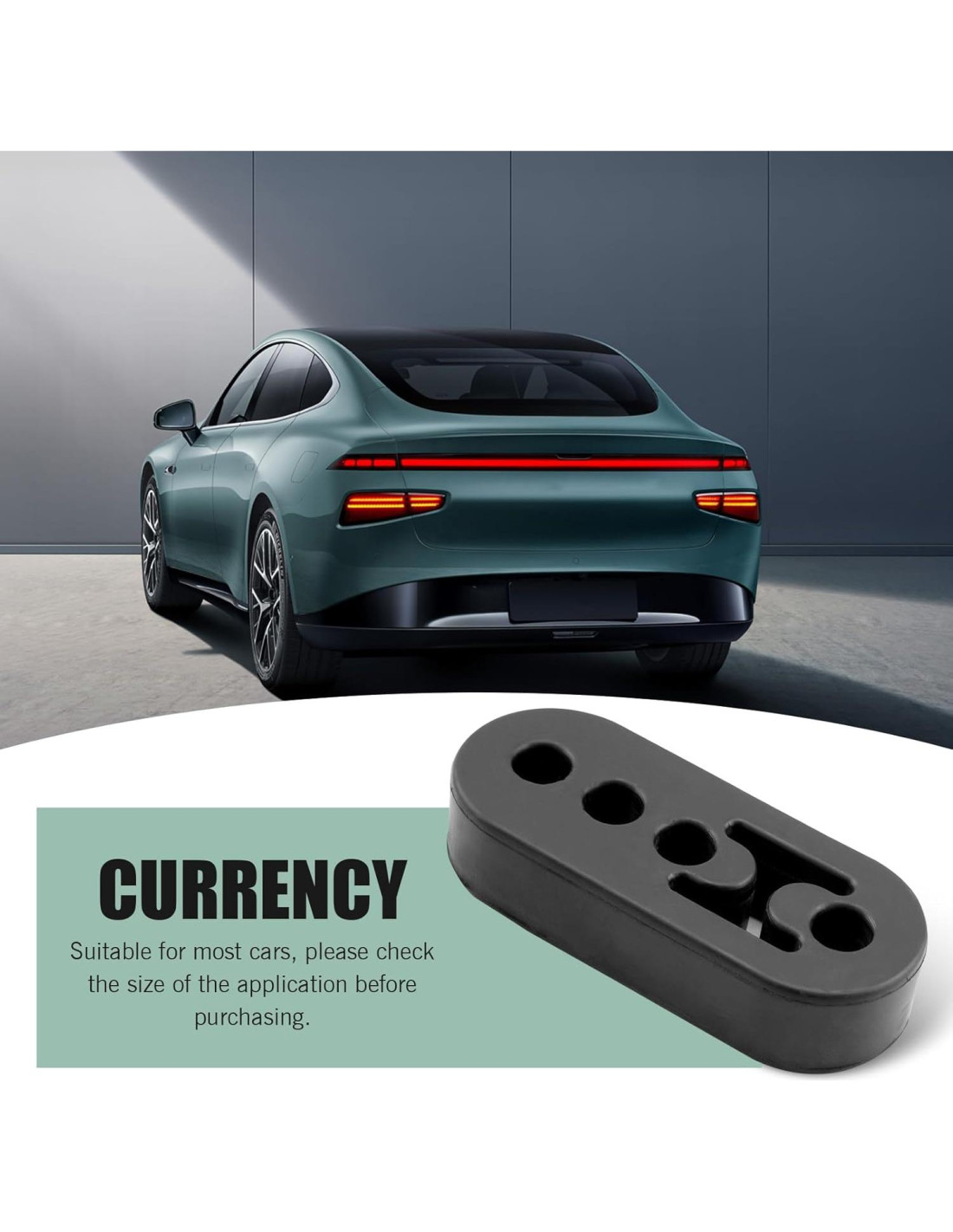 - Material: El soporte de escape está hecho de goma de alta densidad, que no es fácil de romper. Este producto puede reducir efectivamente el sonido generado por el movimiento del cuerpo, colisiones o auto-vibraciones.