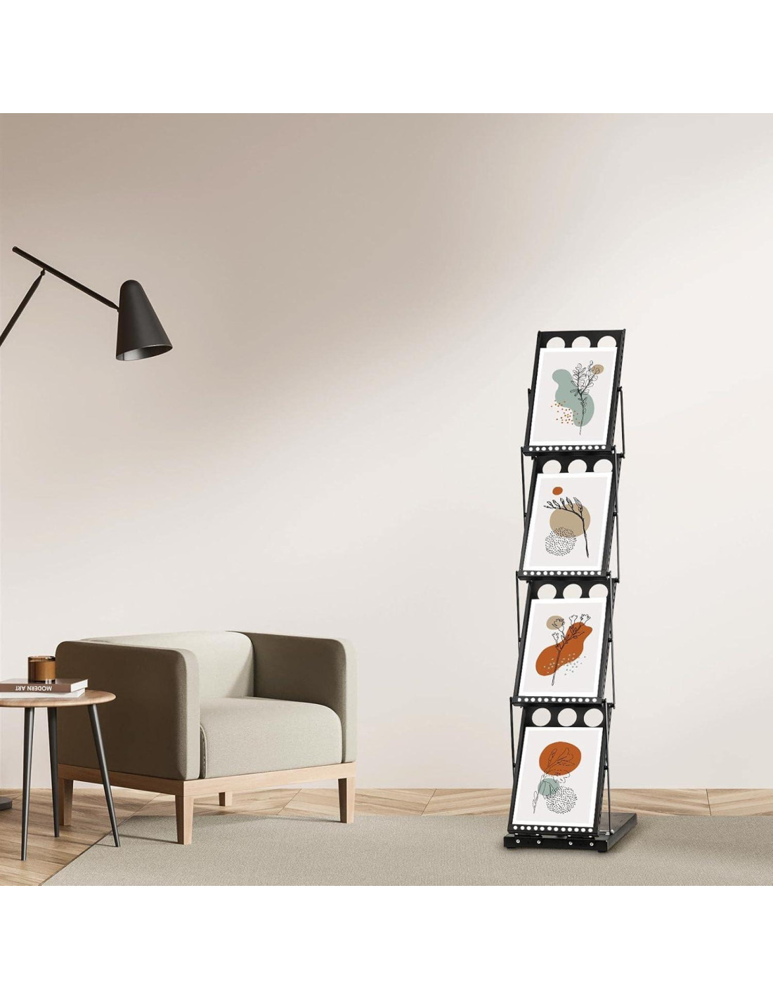 - Soporte de Literatura Portátil: recibirás 1 pieza de soporte de literatura y 1 pieza de bolsa de transporte; El tamaño plegado del soporte de exhibición de literatura es de aproximadamente 35.6 x 26.9 x 14 cm, y el tamaño desplegado del soporte de almacenamiento de folletos es de aproximadamente 35.6 x 26.9 x 134.6 cm, que puede almacenar archivos de 21.6 x 30.9 cm; El diseño portátil es conveniente para tu uso diario y transporte