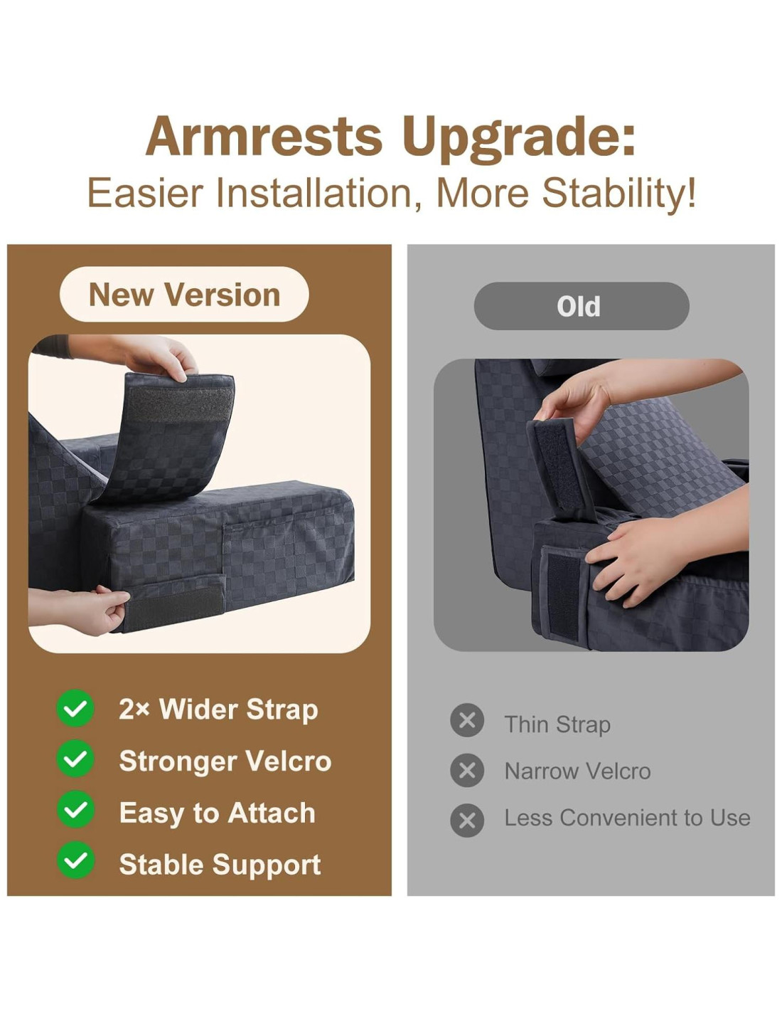 - Comodidad Ajustable: Respaldo en cuña de 45 con reposacabezas ajustable y reposabrazos desmontables, proporcionando comodidad personalizada que se adapta a las curvas de tu cuerpo