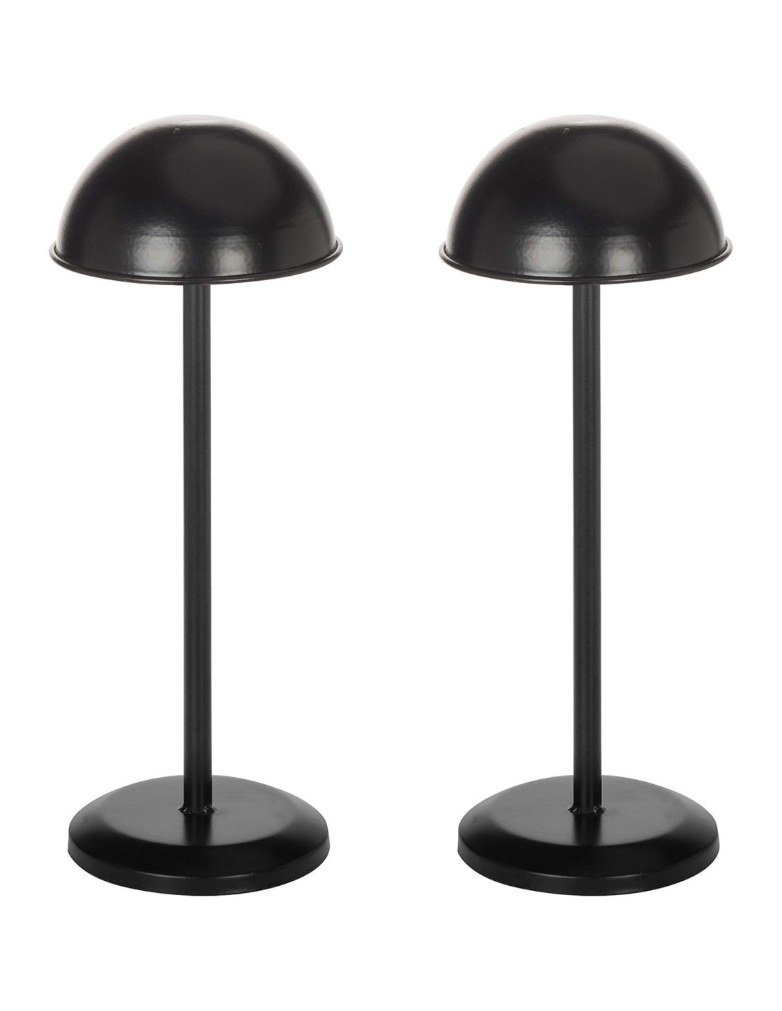 - Un soporte de exhibición de sombreros y pelucas de altura ajustable hecho de metal resistente con un acabado negro