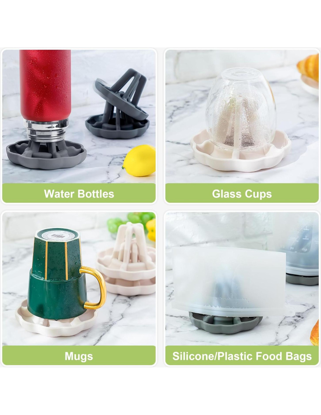 Ahorra tiempo y esfuerzo, manteniendo el soporte para secar botellas limpio e higiénico para su próximo uso. El diseño hueco del soporte para secar acelera el secado hasta 5 veces en comparación con las alfombrillas tradicionales. Cada soporte de silicona seca una taza o botella, haciéndolo más ordenado y rápido que apilarlos juntos. Los diámetros de la base y la parte superior son 5.1 pulgadas (13 cm) y 1.6 pulgadas (4 cm), respectivamente, con una altura de 3.1 pulgadas (8 cm). Los soportes para botellas de agua apilados ahorran espacio, organizan, secan botellas de manera eficiente y ofrecen fácil acceso.