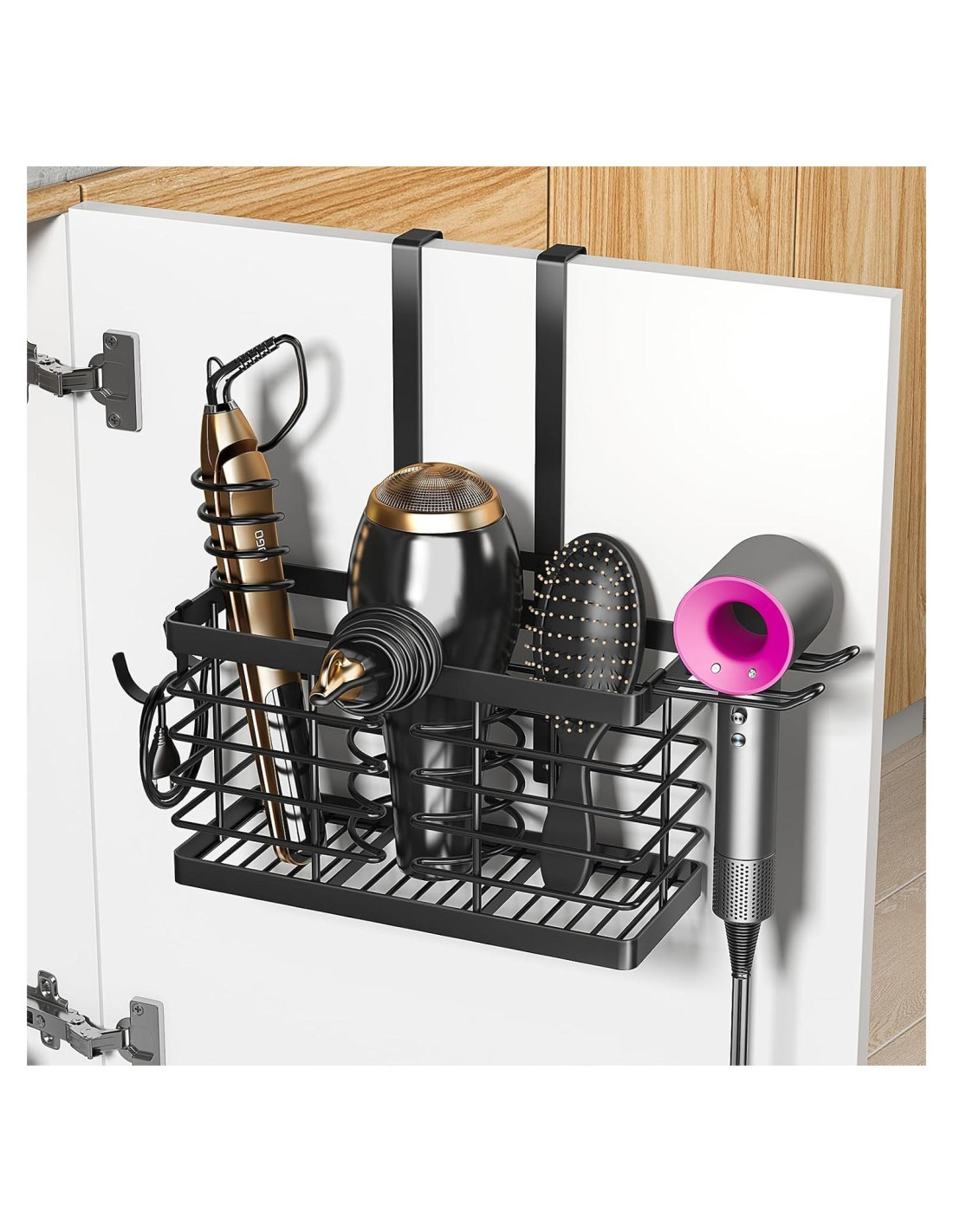 - [Fácil de Montar] Sin necesidad de un montaje complicado, el soporte para secador de pelo y plancha es simple de instalar y está listo para usar en 1 minuto. Los ganchos ajustables y múltiples opciones de montaje proporcionan una instalación flexible para adaptarse perfectamente a su espacio