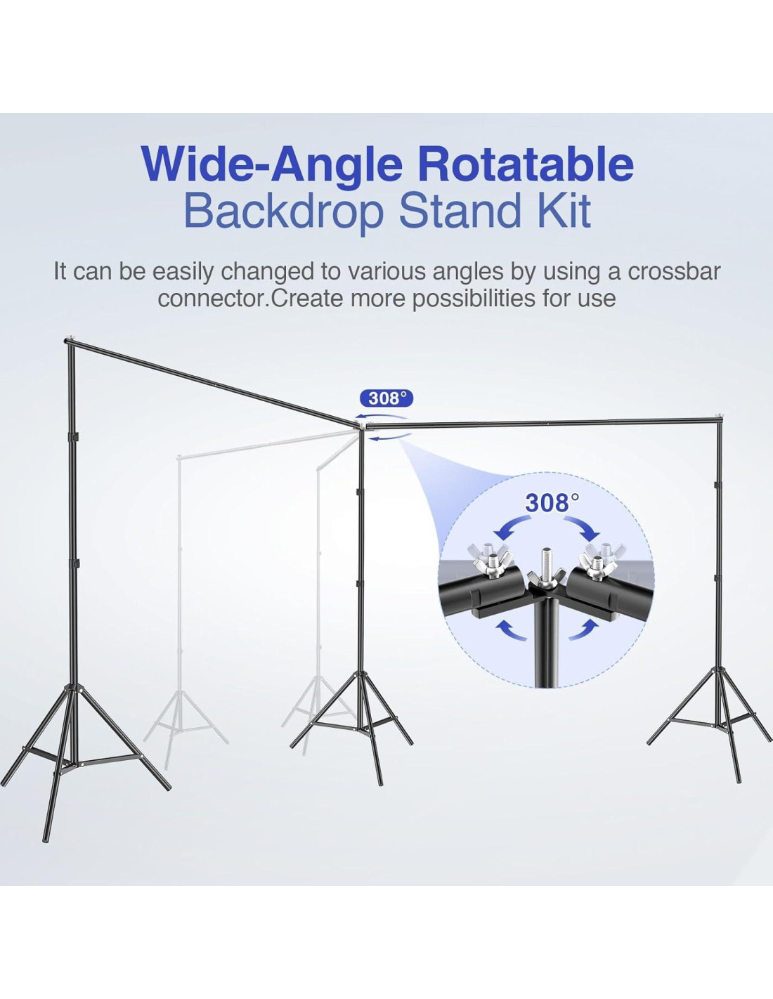 - [Soporte de fondo extra grande] Este kit mejoró la parte de conexión del soporte y la barra transversal para permitirle extender el ancho a 20ft (6.1m), para satisfacer sus necesidades en eventos a gran escala. Estas partes pueden rotar para ajustar el ángulo, muy flexibles y convenientes.