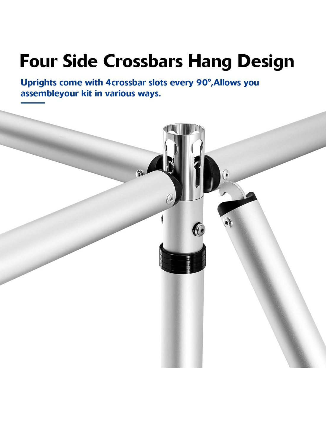 - El paquete incluye: el soporte de fondo de alta resistencia contiene 2 bases rectangulares de alta resistencia (4 tornillos), 2 postes y pin 1 barra transversal 1 bolsa de transporte
