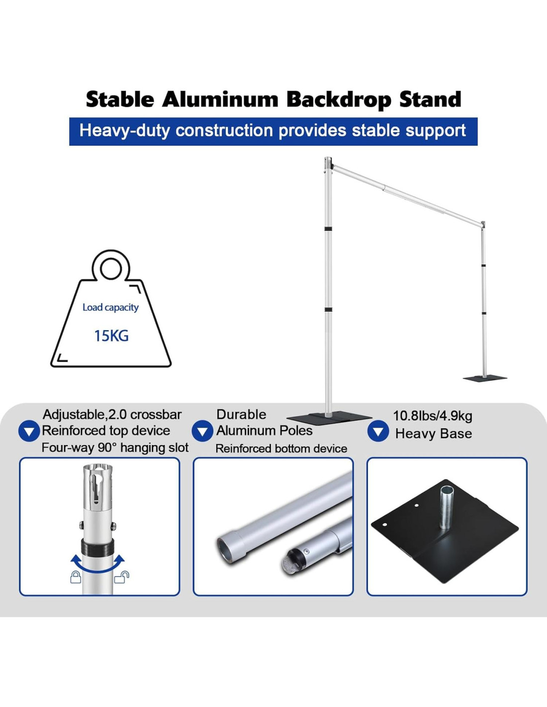 - Soporte de fondo ajustable: soporte de tubo y cortina de 8x10 pies ajustable en altura de 4.5 pies a 10 pies, ancho de 7 pies a 10 pies, se puede configurar fácilmente en diferentes tamaños para diferentes tamaños de fondo