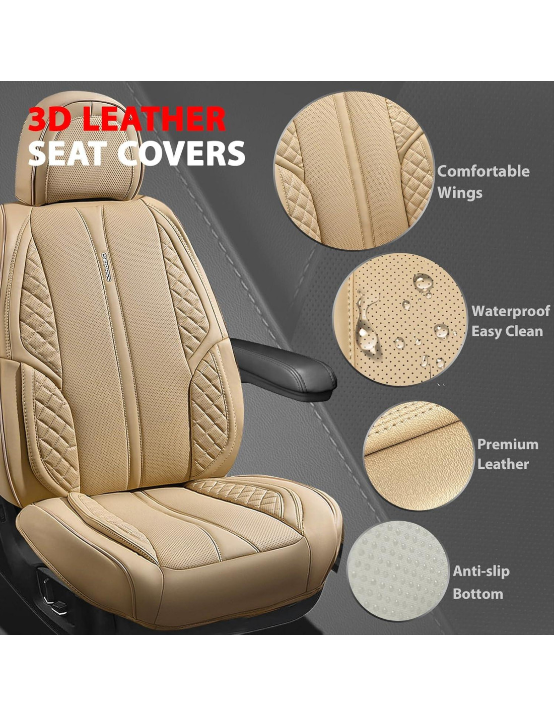 - [DISEÑO DE LUJO] El juego completo de cubiertas de asiento de cuero Nappa con cuero PU de alta calidad, protección de cobertura total 3D, protectores de ala en rombo para dar soporte lateral, lleno de clásico, añade lujo y sentido premium al interior del automóvil. Varios colores para seleccionar, puedes definir un nuevo aspecto para tu automóvil como desees.
