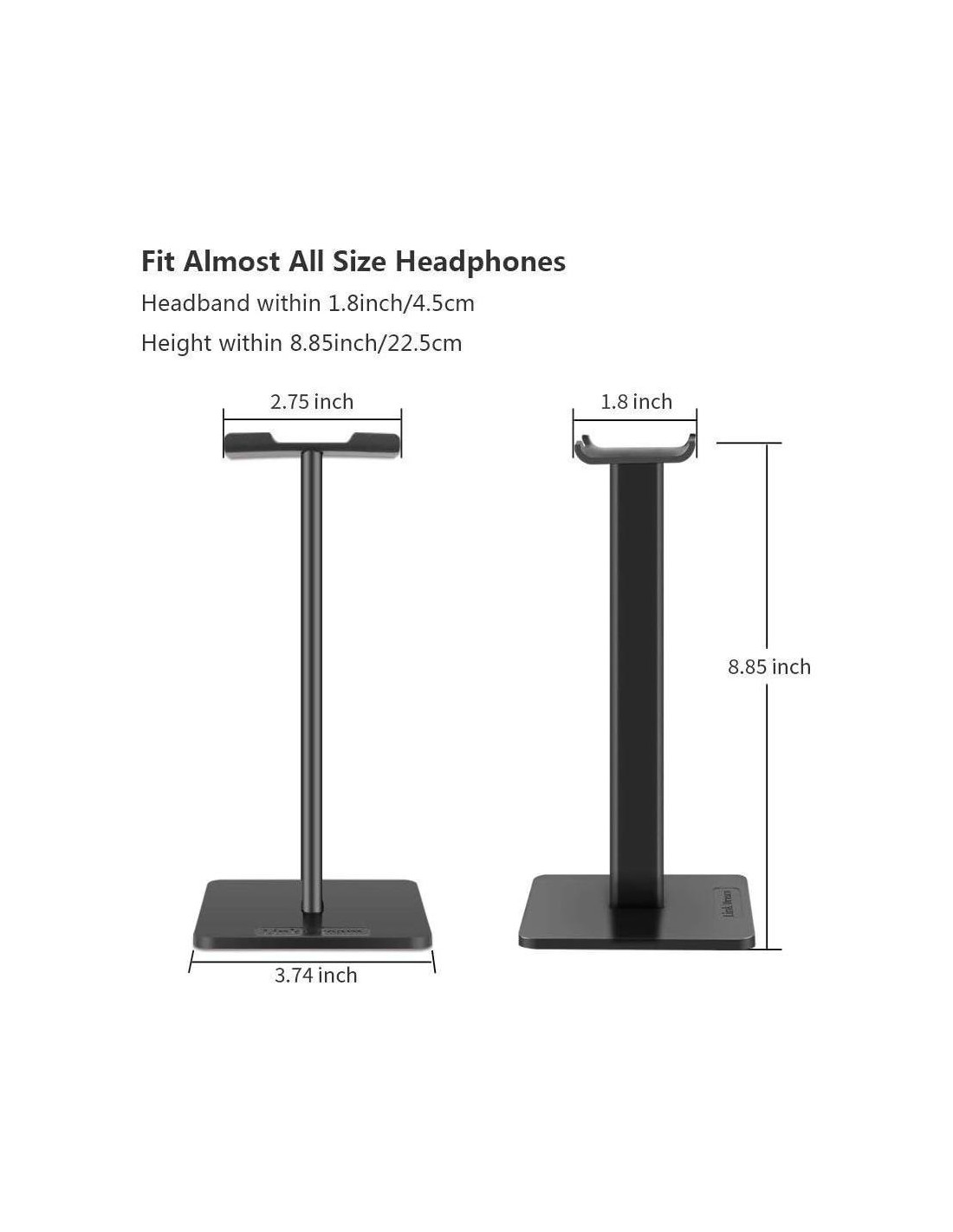 - RESISTENTE: El poste central de aleación de aluminio del soporte para auriculares es resistente y delgado; los estabilizadores de goma en la parte inferior agarran la superficie y mantienen todo el soporte de manera segura mientras sostiene tus auriculares; goma suave y protectora en la parte superior previene cualquier rasguño o daño con su efecto de amortiguación. Material de alta calidad ABS y goma TPU, seguro y duradero.