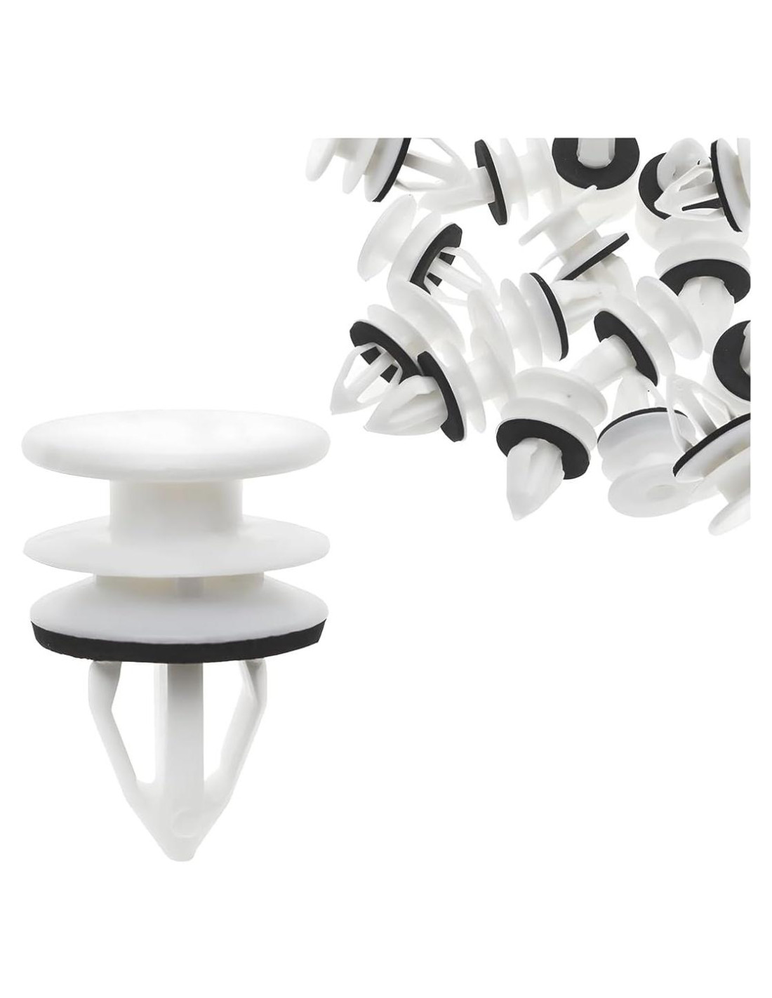 Especificaciones: Material: plástico Color: blanco Tamaño: diámetro de la cabeza: 0.75" (1.9 cm) fondo: 0.44 x 0.66" (1.1 x 1.7 cm) Peso: 60g (2.11oz) Paquete Incluye: 30pcs clips de retención del panel de recorte de puerta de auto Compatible con: -Allure, Enclave, LaCrosse, Rainier, Avalanche, Camaro, Cobalt, Equinox, HHR, Impala, Malibu, Silverado, SSR, Suburban, Tahoe, Trailblazer, Volt -ATS, CTS, DTS, Escalade, SRX -Acadia, Envoy, Savana, Sierra, Terrain, Yukon -H2, H3, H3T -Bravada -G5, G6, Grand Prix, Pursuit, Solstice -Aura, Outlook, Sky, Vue Características: -Juego de 30 Piezas: Este paquete de producto contiene 30 piezas, capaz de abordar necesidades de reemplazo o instalación en múltiples vehículos, proporcionando un amplio soporte de uso. -Aplicación Versátil: Este producto es compatible con múltiples áreas como faldones laterales y parachoques, satisfaciendo las necesidades de instalación de varios componentes.