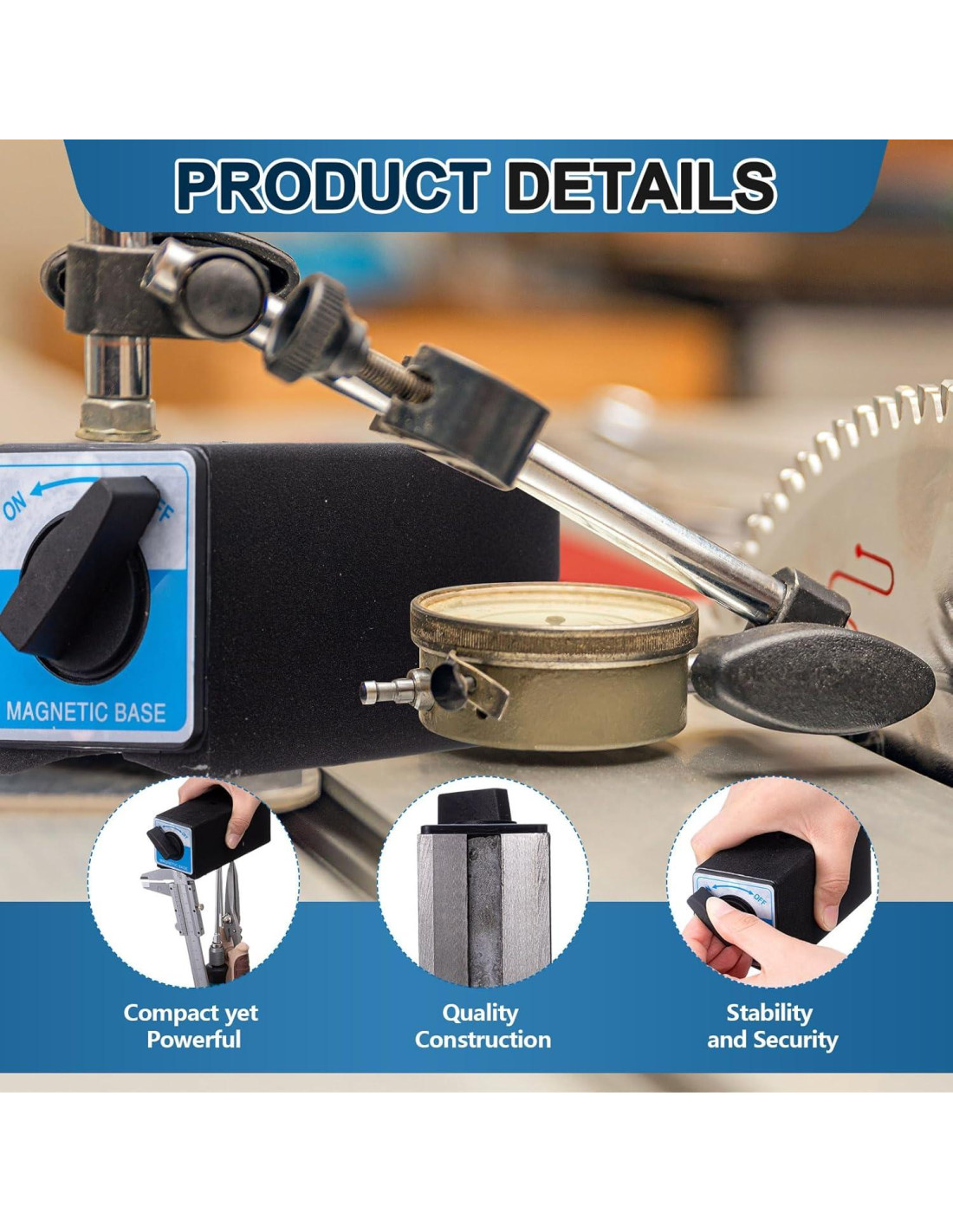 - Construcción de Calidad: hecho de acero de calidad, el interruptor on/off del soporte de base magnética ofrece durabilidad y longevidad, diseñado para soportar un uso riguroso en varios campos mecánicos; Su color negro añade un atractivo estético, haciéndolo adecuado para cualquier entorno