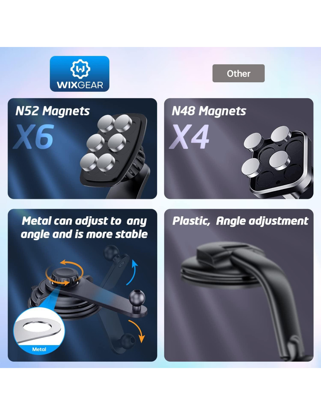 - Seis Imanes Fuertes: Este soporte magnético para teléfono tiene 6 imanes N52 fuertes en su interior, puede sostener incluso teléfonos más grandes como el iPhone 13 y 14 Pro Max sin afectar la señal de tu teléfono.