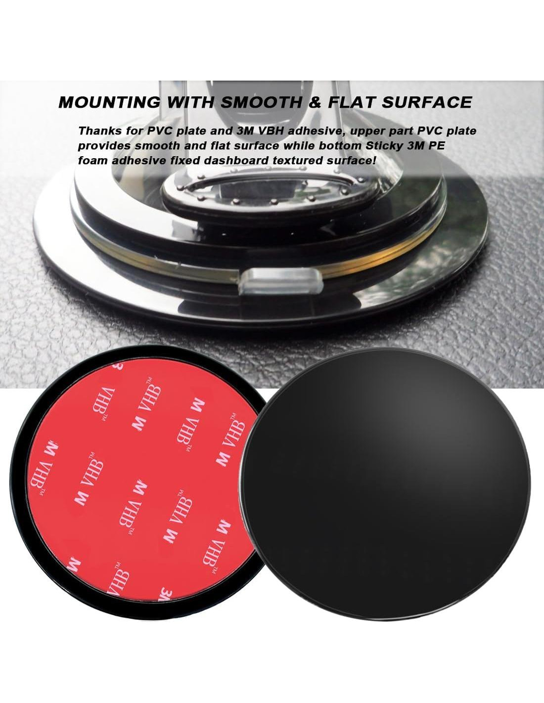 - Lista de Empaque: 4 discos de montaje adhesivo para tablero de 95mm de diámetro. No se preocupe más por los soportes de teléfono o accesorios de GPS que se caen durante la conducción. Si utiliza la almohadilla adhesiva para el tablero, puede evitar levantar frecuentemente la ventosa del tablero mientras daña su automóvil con el tiempo, y protege su automóvil de daños.