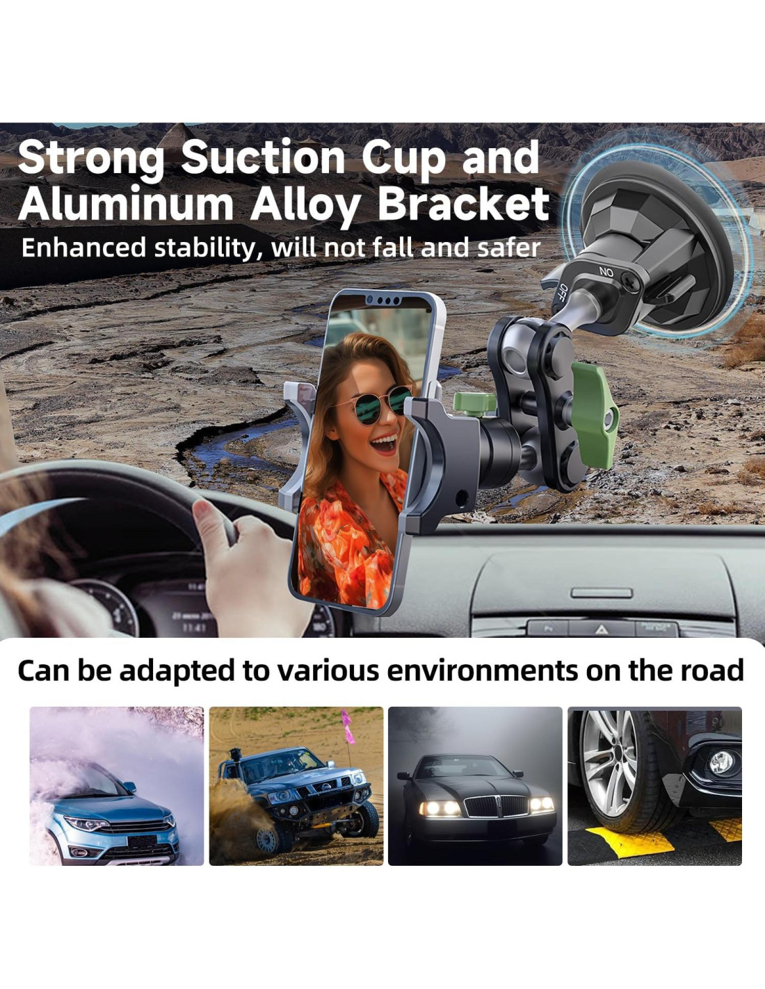 - Construcción Duradera: Hecho de material de aleación de aluminio, este soporte de cámara con ventosa está diseñado para soportar el uso diario y proporcionar una solución de montaje estable incluso si hay vibraciones del motor o baches en la carretera