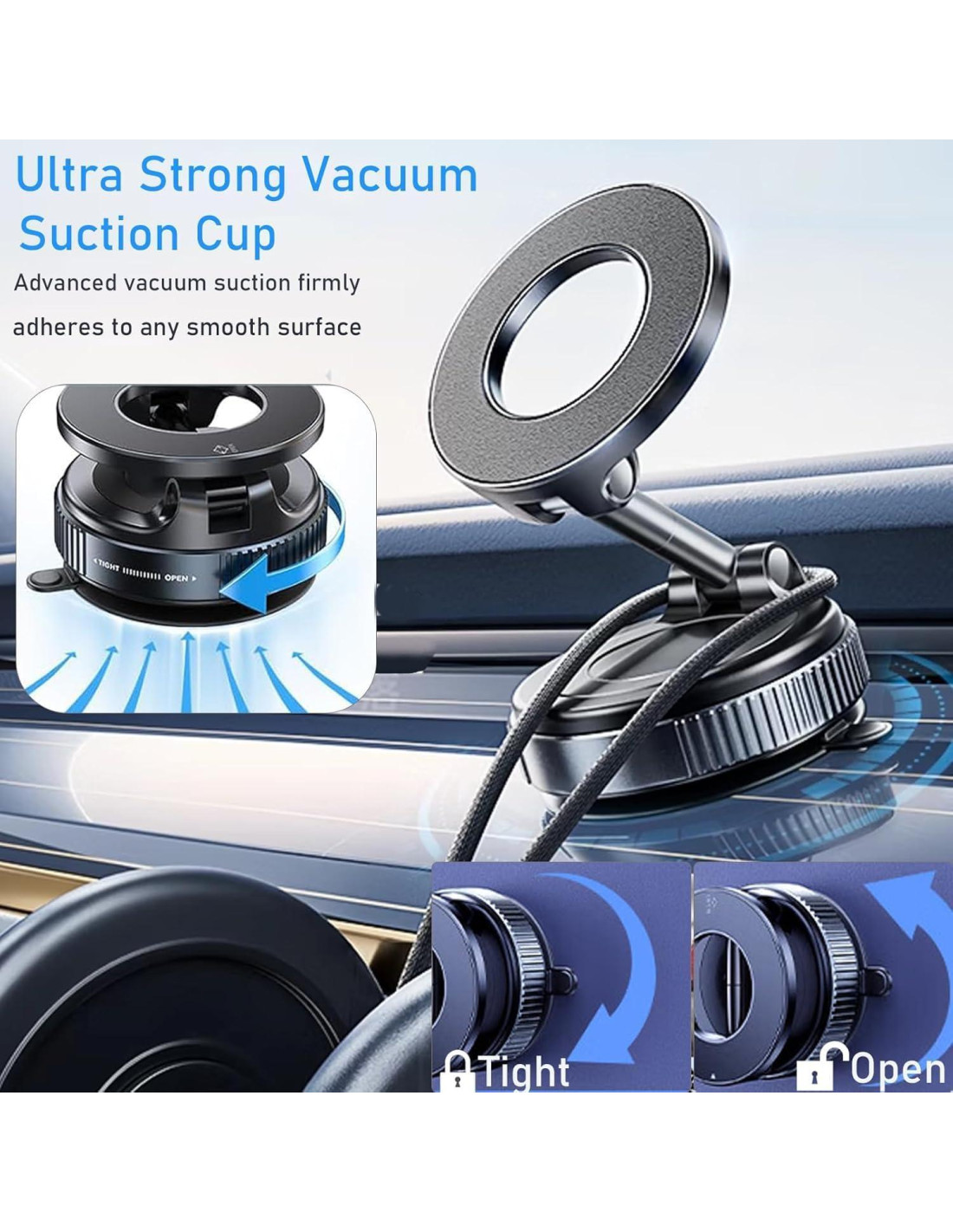 - [Soportes de Teléfono para Coche con Fuerte Succión] - El soporte magnético para teléfono cuenta con un soporte de ventosa de gel nano de 3 capas. Su revolucionario mecanismo de bloqueo por torsión crea un sello hermético que soporta más de 150 lbs (68 kg) de fuerza de tracción. Se adhiere perfectamente a tableros y incluso a azulejos de ducha sin dejar residuos. (Consejo profesional: Aplica una gota de agua antes de montar para una succión máxima instantánea)
