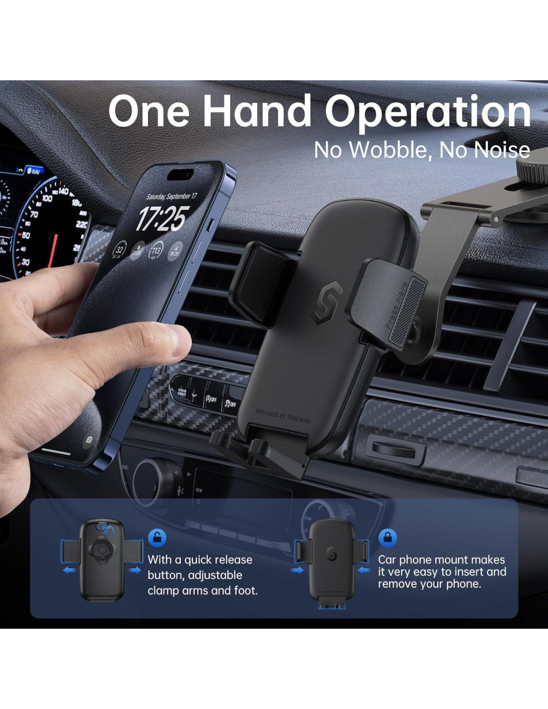 - [Mano de Obra de Precisión] El soporte mecánico para teléfono de coche Syncwire está construido con material PC+ABS resistente al calor de alta calidad para asegurar estabilidad y fiabilidad inquebrantables. Los brazos y paneles de sujeción están hechos de silicona suave ecológica para mejorar la fricción y estabilidad y evitar ruidos anormales.