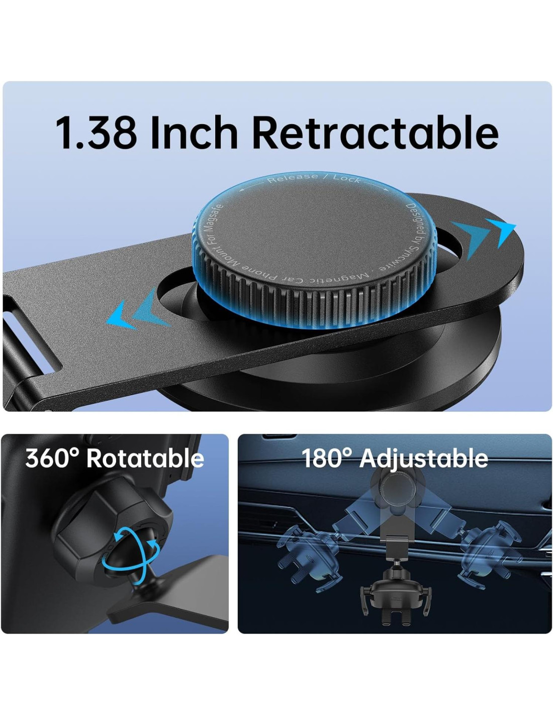 - [Fácil Ajuste de Ángulo] Nuestro soporte para teléfono de coche cuenta con una junta de bola rotativa de 360 grados, proporcionando una ajustabilidad sin igual. Ajusta fácilmente la tensión usando la perilla trasera giratoria para obtener el ángulo de visión deseado. Colocar tu teléfono en un soporte para teléfono de coche es un proceso simple de un solo paso que libera tus manos y aumenta la seguridad durante llamadas y navegación GPS.