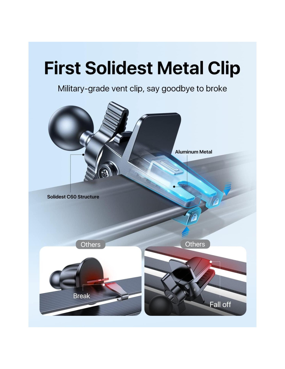 - [Versión Mejorada Más Nueva] Es el primero en el mercado que adapta el material de aviación 'PTFE'. Con el clip de ventilación de metal [más fuerte y más ajustado]. Atornille la abrazadera y el gancho de clip de goma atrapará una de las aspas de ventilación del automóvil de manera ajustada, incluso si golpea un bache o un giro más brusco. Así que este soporte para teléfono de ventilación podría funcionar bien para usted en entornos de conducción extremadamente difíciles. - Nunca se rompe y es super estable