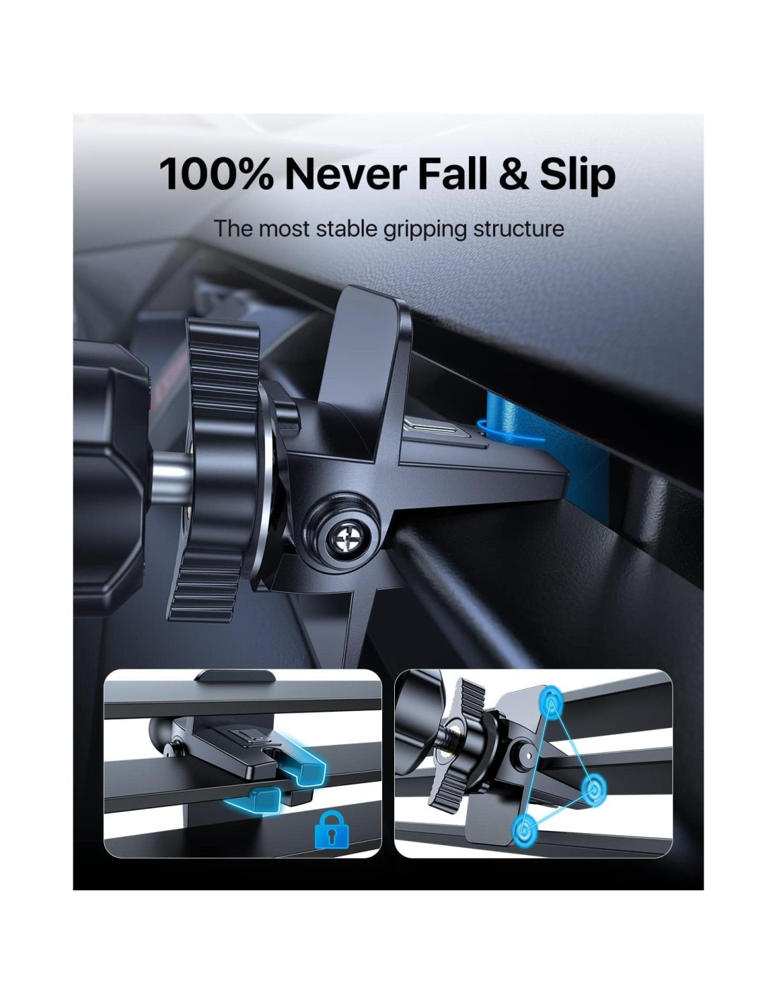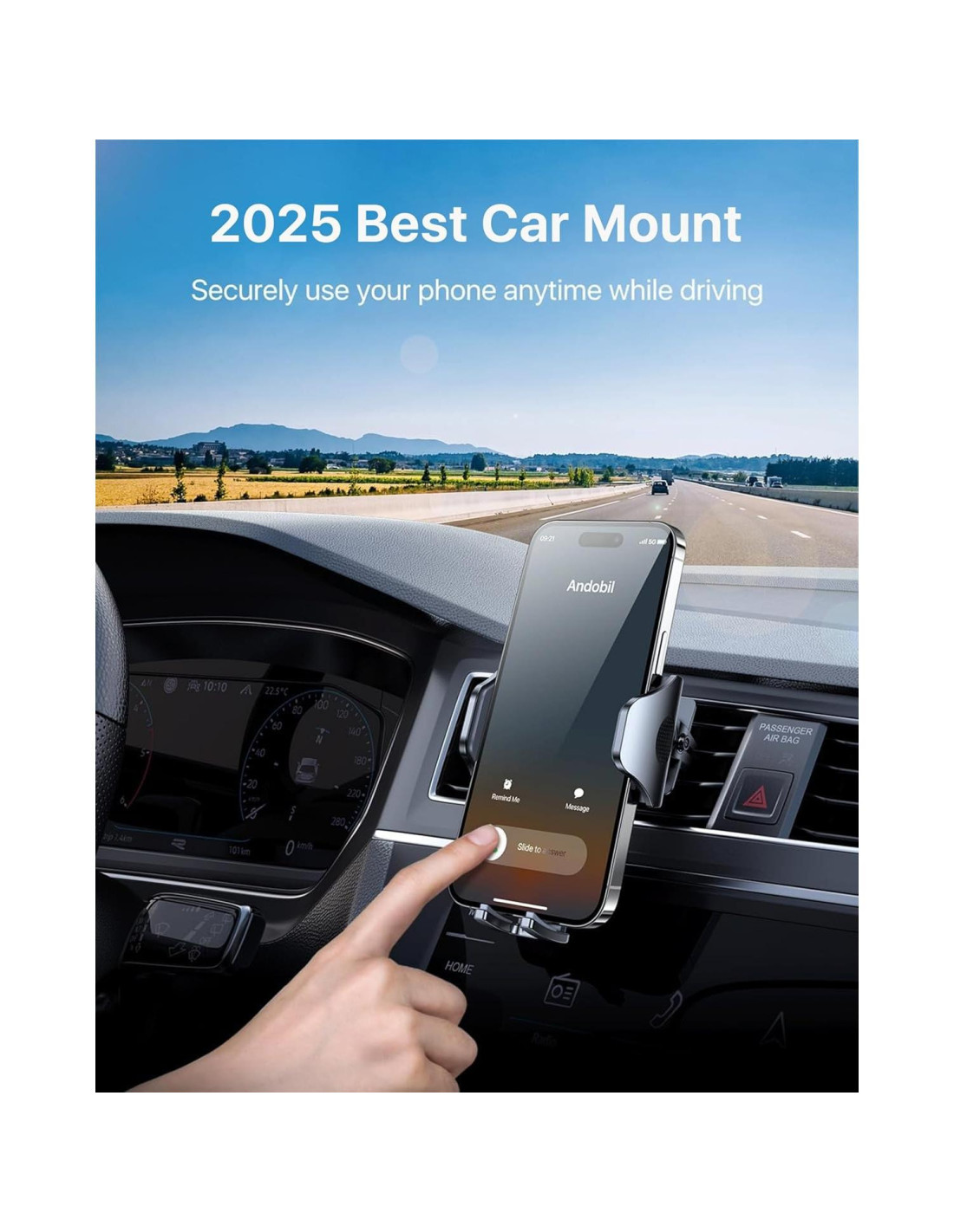 Máquina de botón de un toque, más rápida y fácil de instalar y usar su teléfono. Probamos todos los teléfonos celulares y producimos esta estructura. La estructura no bloquea ninguna tecla de botón del teléfono celular. (Ya sea modelo de teléfono más pequeño o más grande) Hay un puerto de carga reservado, por lo que puede cargar su teléfono fácilmente. Siempre mantenga su teléfono con batería completa. También no bloqueará la entrada auxiliar. La bandeja inferior es ajustable. Si su teléfono es de gran tamaño, puede bajar el pie. Así que el soporte para automóvil para ventilación puede sostener diferentes tamaños de teléfonos celulares. Gracias al diseño del brazo de clip/descanso de pie ajustable, el soporte para teléfono celular para automóvil es compatible con la mayoría de los teléfonos celulares en el mercado, ya sean modelos Mini o Pro Max. El ancho del brazo del clip se ha incrementado a 2.84 cm y no hay problema en ajustar un teléfono grande con una funda gruesa. El clip de metal mejorado es compatible con la mayoría de las ventilaciones horizontales/verticales, y la longitud del clip se ha incrementado a 2.3 cm, por lo que no tiene que preocuparse por la longitud insuficiente. ¿Por qué elegir un soporte para teléfono de automóvil para ventilaciones? Acceso fácil y vista despejada - Los soportes para teléfono de ventilación posicionan su teléfono en un lugar conveniente cerca de su línea de visión y al alcance, proporcionando una vista despejada de la carretera por delante. ¿Es este soporte para teléfono de automóvil compatible con todas las ventilaciones de automóviles? El soporte para teléfono de ventilación andobil se adapta tanto a ventilaciones horizontales como verticales. Sin embargo, no se recomienda para ventilaciones redondas, por ejemplo, Honda/Toyota/Audi/Mercedes-Benz. ¿Es este soporte para teléfono de automóvil compatible con todos los teléfonos inteligentes? Con un brazo de clip ajustable más ancho y profundo, nuestro soporte para automóvil acomoda todos los teléfonos inteligentes de 10.16 a 17.78 cm, compatible con iPhone 16 Pro Max 15 14 13 12 11 XR, Samsung Galaxy S24 Ultra S23 S22 S21 Google Pixel Xiaomi Motorola OnePlus, etc. ¿Su agarre es lo suficientemente fuerte para sostener el teléfono de manera segura durante la conducción? Tiene estabilidad de grado militar con una fuerza de sujeción de hasta 23.59 kg, lo que lo hace 20 veces más resistente que otros y capaz de sostener teléfonos firmemente incluso en caminos accidentados o giros bruscos.