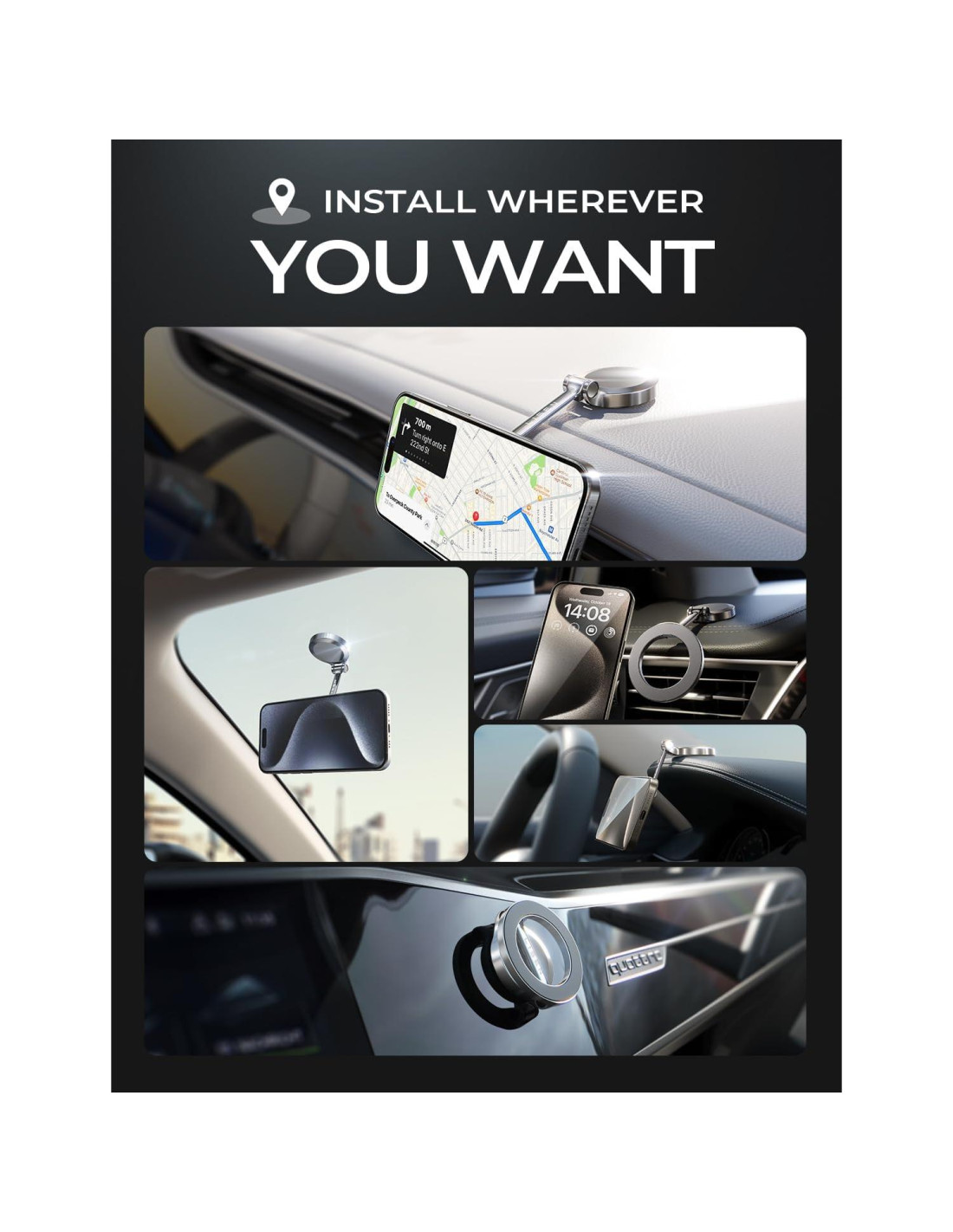 - Diseño Minimalista: Inspirado en el iPhone, diseñado para Magsafe, apariencia simple, instalación rápida, fácil de usar con una mano, rodamientos ajustables y rotativos, imanes alineados 1:1, todo lleva a cabo el minimalismo, instalar el soporte de coche magsafe en tu coche no solo embellece tu interior, sino que también hace que tu viaje en coche sea cómodo y fácil! En este significativo día festivo, puede servir como un regalo exquisito para tu amada familia y amigos, permitiéndoles también experimentar el encanto de la tecnología.