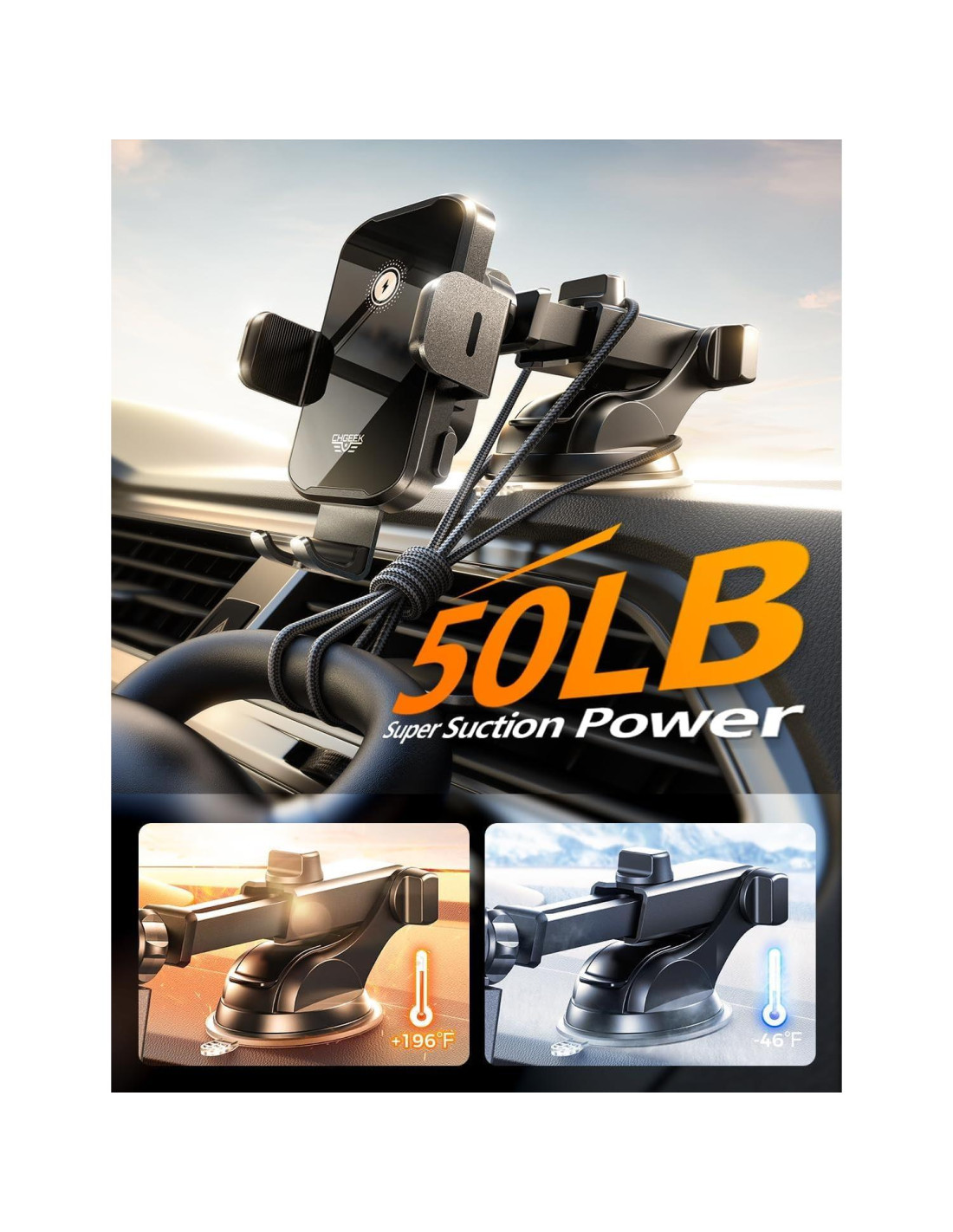 - VENTOSAS MEJORADAS HASTA 50 LIBRAS: Soporte para teléfono de automóvil con carga inalámbrica - se puede fijar de manera segura al tablero, parabrisas u otras superficies planas con ventosas superadas y almohadillas de gel super viscosas. Incluso a altas temperaturas, puede mantener una fuerte succión. El mantenimiento también es muy fácil: enjuagar con agua tibia y secar al aire para restaurar las ventosas. Mejorar tu experiencia de conducción en el automóvil requiere este soporte para teléfono de automóvil confiable y multifuncional.