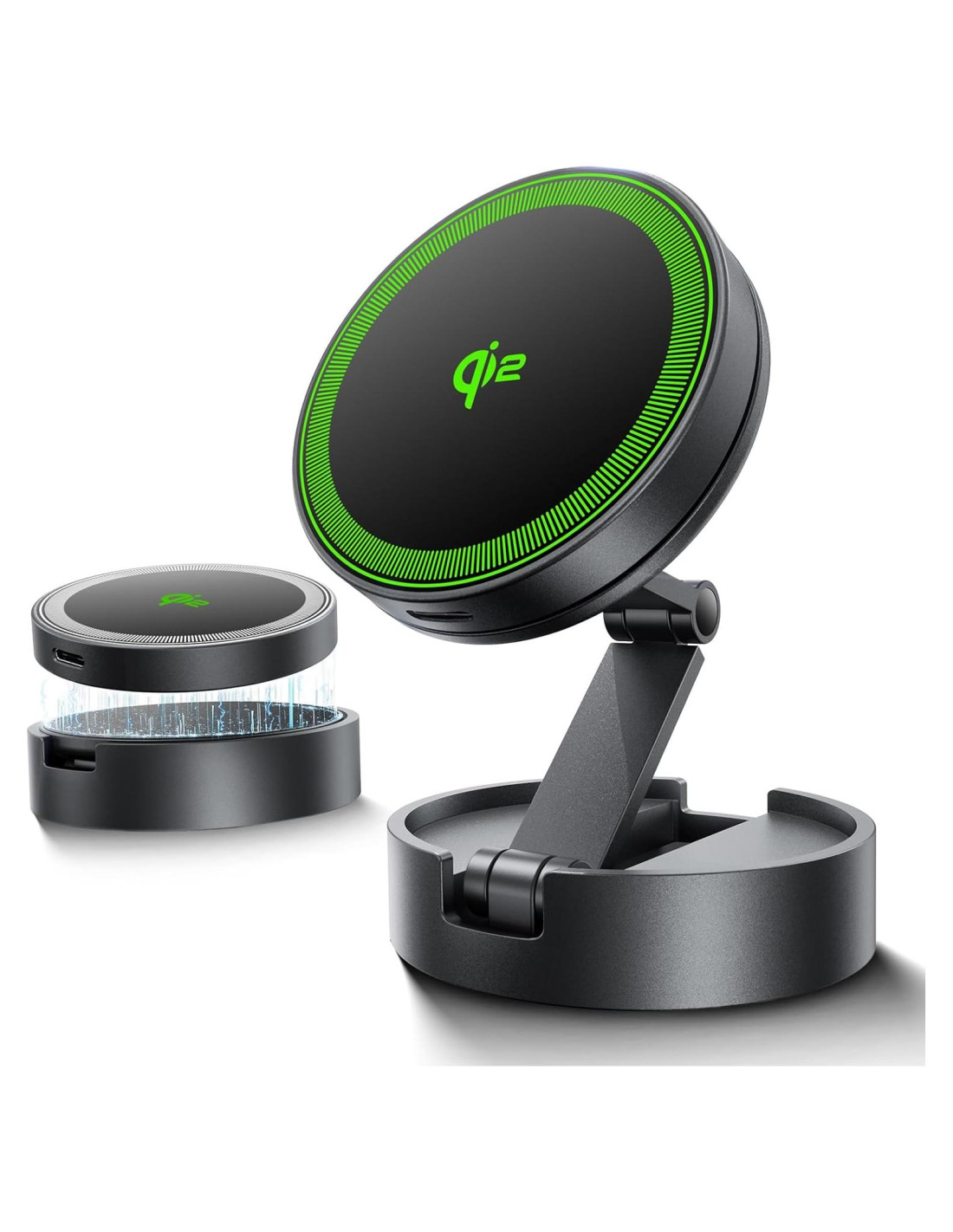 - Cargador Inalámbrico Desmontable con Carga Rápida de 15W Certificado Qi2 El pad de carga magnético de doble cara se adhiere de forma segura al soporte para carga y navegación o funciona de forma independiente. Certificado Qi2 y compatible con MagSafe, ofrece alineación precisa y carga rápida y segura. Con 15W de potencia (2 veces más rápido que 7.5W), elimina la ansiedad por la baja batería. Construido con vidrio templado, materiales retardantes de llama V0 y refrigeración de grafeno, es delgado, ligero y perfecto para viajar. Nota: Usa un adaptador de 18W, 20W o superior para lograr una eficiencia de carga óptima (adaptador no incluido).