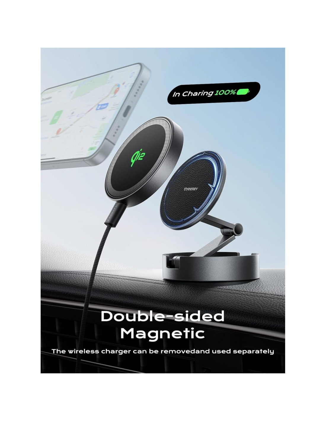 - 2025 Diseño Elegante---Ahora Disponible THREEKEY Cargador Inalámbrico para Soporte de Coche presenta un diseño compacto y elegante que se integra perfectamente con el interior de tu coche. A diferencia de los soportes de plástico tradicionales con ajuste limitado, este soporte magnético cuenta con una base rotativa de 360 grados, juntas metálicas de 3 ejes de primera calidad y brazos de aleación de zinc duraderos, ofreciendo ajustes flexibles de ángulo, posición y distancia. Su estabilidad y durabilidad superiores aseguran el mejor ángulo de visión y una experiencia de conducción sin complicaciones.