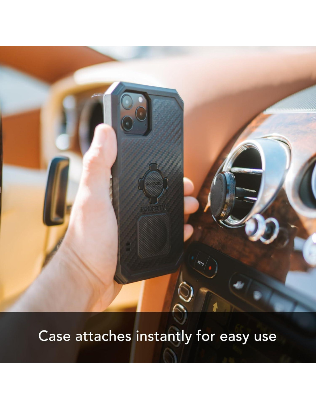 - FUNCIONALIDAD DEL SOPORTE MAGNÉTICO: Simplemente desliza este soporte a cualquier ventilación de aire de coche, camión o jeep y monta tu funda magnética Rokform. Una vez montado, tu teléfono inteligente puede ser visto en modo retrato o paisaje (360 grados) sin deslizamiento.