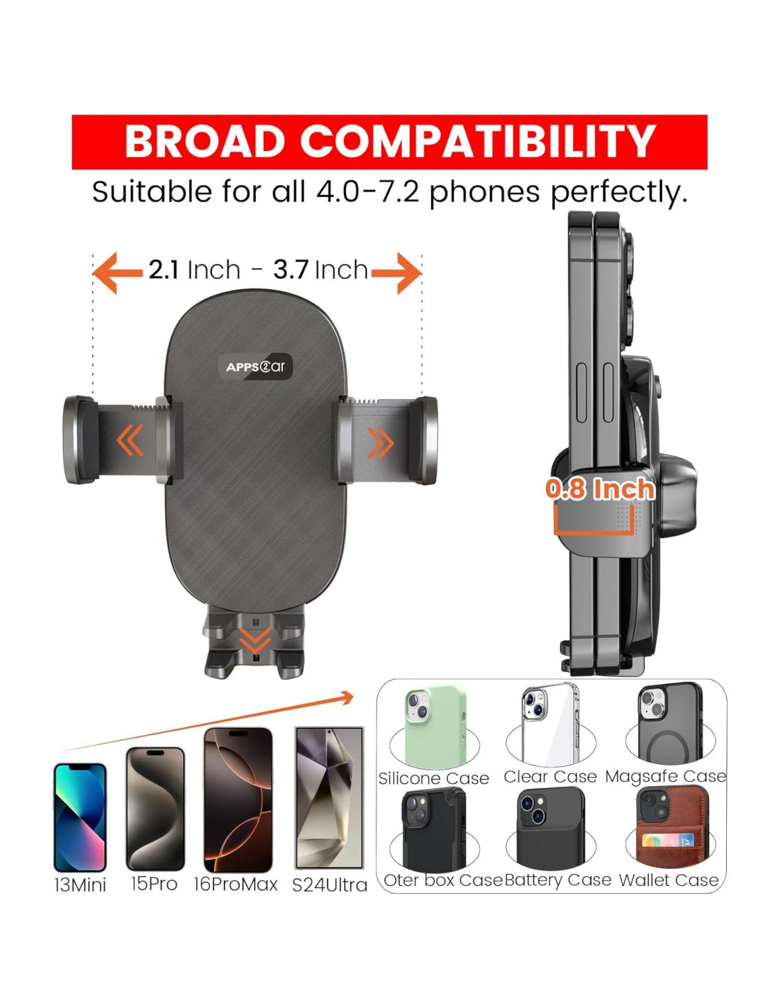 - Perfecto para Teléfonos Grandes y Amigable con Fundas Gruesas: Los brazos ajustables extra anchos se adaptan a teléfonos de 4.0-7.0" (10.2-17.8 cm) con fundas voluminosas. Compatible con todos los iPhones 16 Pro Max 15 Plus 14 13 12 11 XS XR X SE, teléfonos Samsung Galaxy, Google Pixel y más