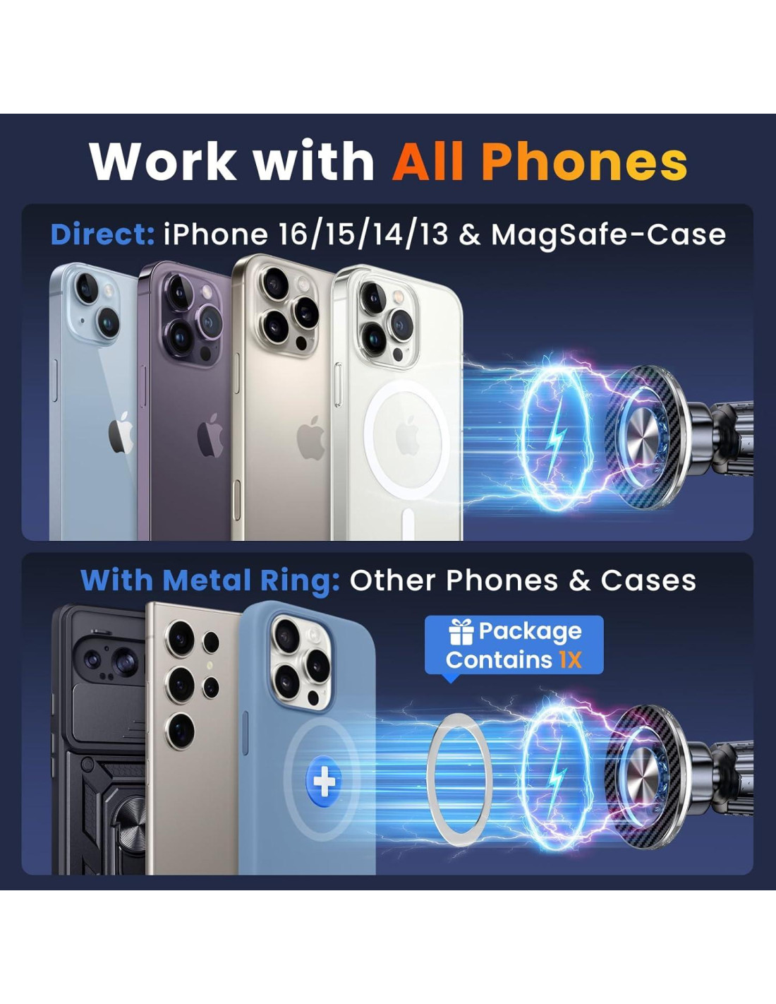- Características especiales: 1 anillo de metal incluido - se adapta a todos los teléfonos/cajas/ventilaciones, ganchos dobles mejorados 2025, nuevos imanes de generación 2025, tecnología de grado militar exclusiva, sin carga inalámbrica