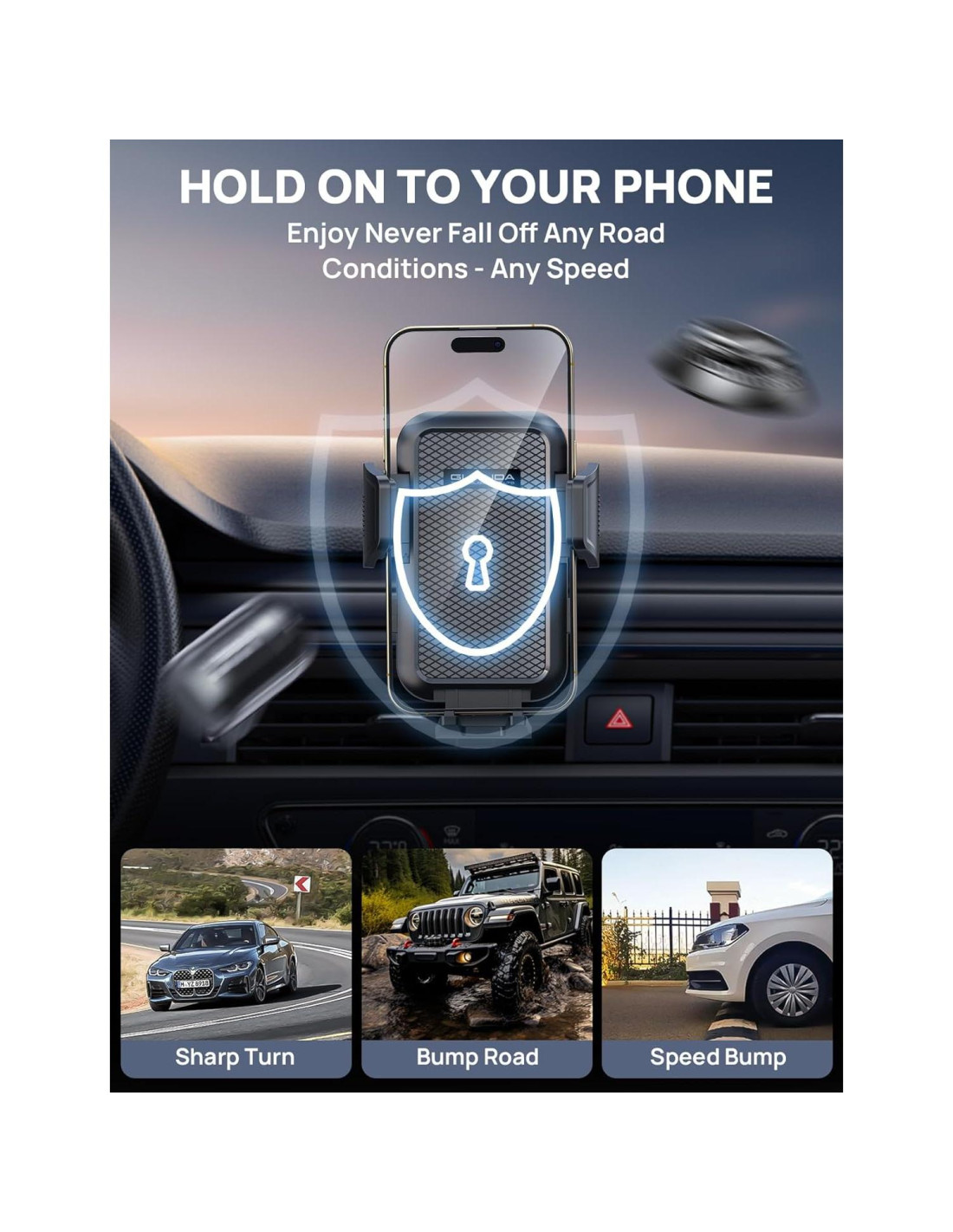 - [Estabilidad Líder] El soporte de teléfono para coche Guanda 2025 adopta una ventosa de gel nano de tres capas y está equipado con una almohadilla de tablero 3M japonesa para doble seguridad, lo que hace que el soporte de teléfono para coche tenga una succión 370% superior al soporte de teléfono tradicional. La ventosa Guanda puede soportar temperaturas de -20C (-4F) a 85C/(185F) y puede reutilizarse.