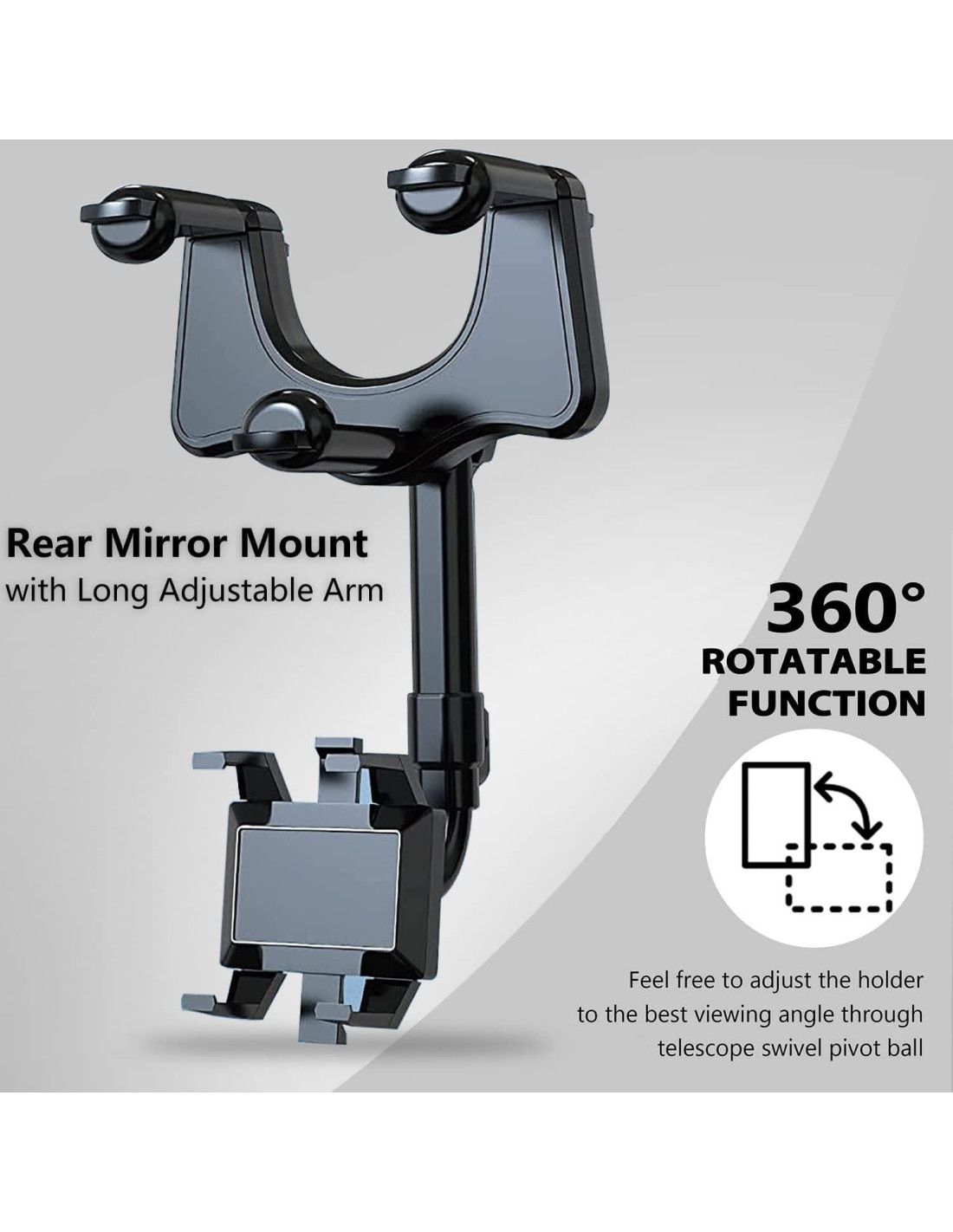 - Nueva Versión Soporte para Teléfono en Espejo Retrovisor El soporte para teléfono en el espejo retrovisor tiene un diseño rotativo de 360, puedes colocar tu teléfono en cualquier ángulo que desees. La longitud del brazo puede ser acortada o extendida (0-2 pulgadas), se puede ajustar sin bloquear la vista. (Por favor verifica si es compatible con tu espejo retrovisor)