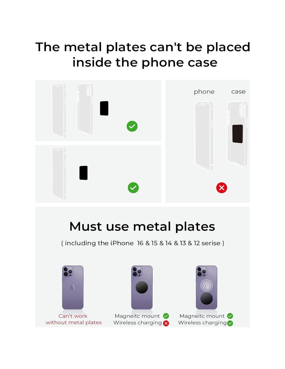 - Contenido de la caja: 2 imanes para soporte de teléfono en el auto, 6 placas metálicas, 6 Películas PE, 3 Años de Soporte de Servicio, 1 Guía del Usuario, servicio al cliente todos los días, entrega rápida