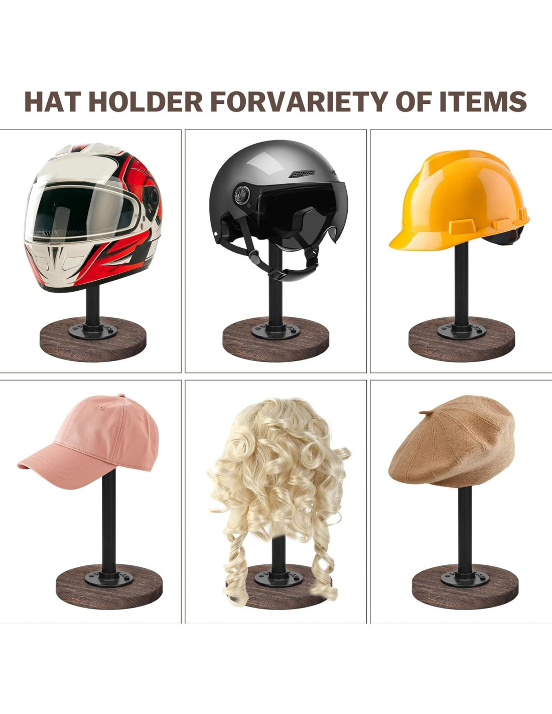 El soporte para sombreros Vrietina con tubo de metal de estilo industrial y soporte de madera quemada ofrece alturas ajustables (24.1 cm/44.5 cm), capacidad de 13.6 kg, y exhibición versátil para sombreros, pelucas, cascos y máscaras, perfecto para el hogar, salón o espacios comerciales con una estética rústica-moderna.