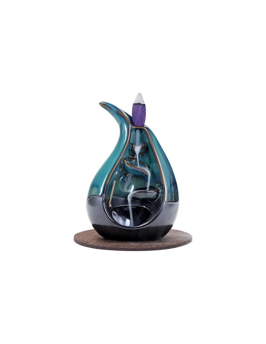 - Material: Este quemador de incienso de retroceso está hecho de cerámica de alta calidad. La capa exterior está cubierta con una capa de esmalte, que es hermosa y fácil de limpiar. Después de usarlo, solo necesita ser enjuagado con agua para verse como nuevo. Los conos de incienso y las varitas de incienso proporcionados con el pedido también son versiones nuevas y mejoradas, que duran más y tienen un aroma más intenso.