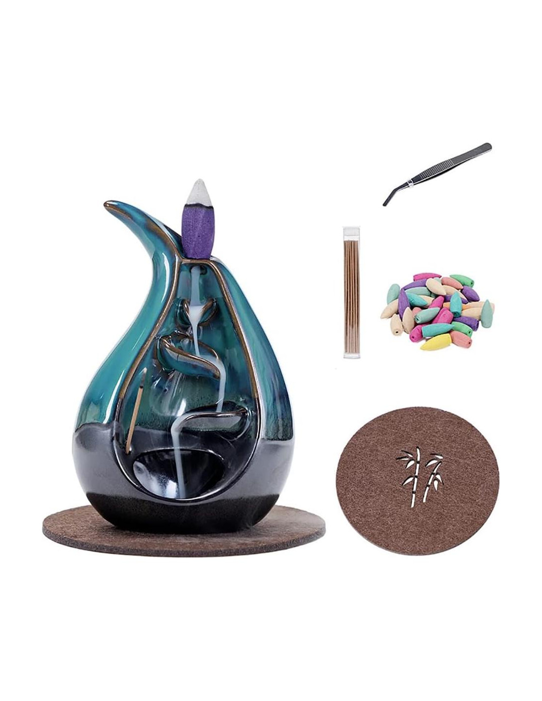 - Incluye: 1 x quemador de incienso, 1 alfombrilla, 30 x conos de incienso de retroceso (aroma mezclado), 30 x varitas de incienso (longitud 10 cm).