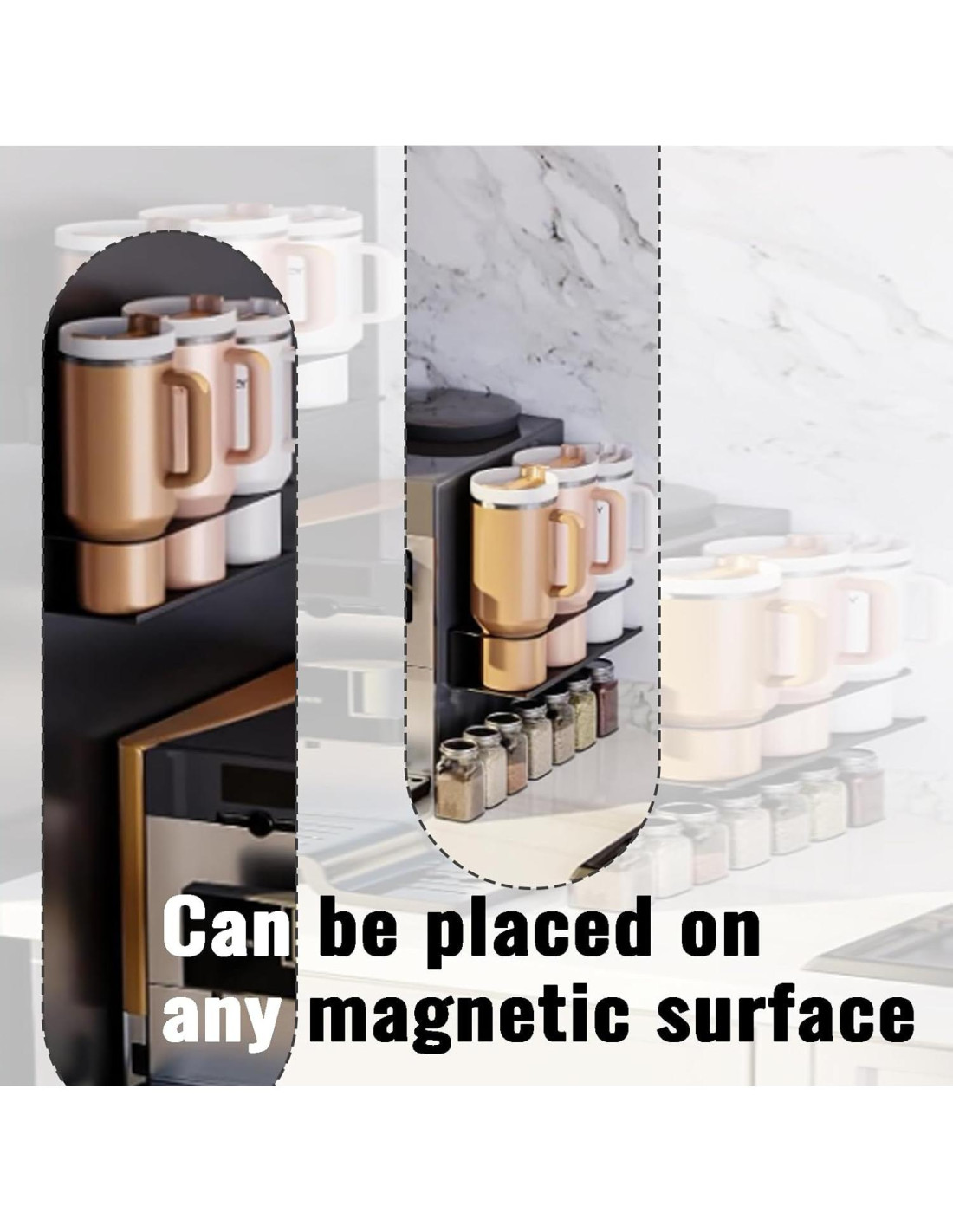 - Diseño que ahorra espacio: Este soporte magnético para tazas puede sostener 3 tazas de 40/30 onzas, ayudándote a organizar el espacio y mantener tu hogar o entorno de trabajo limpio y ordenado.