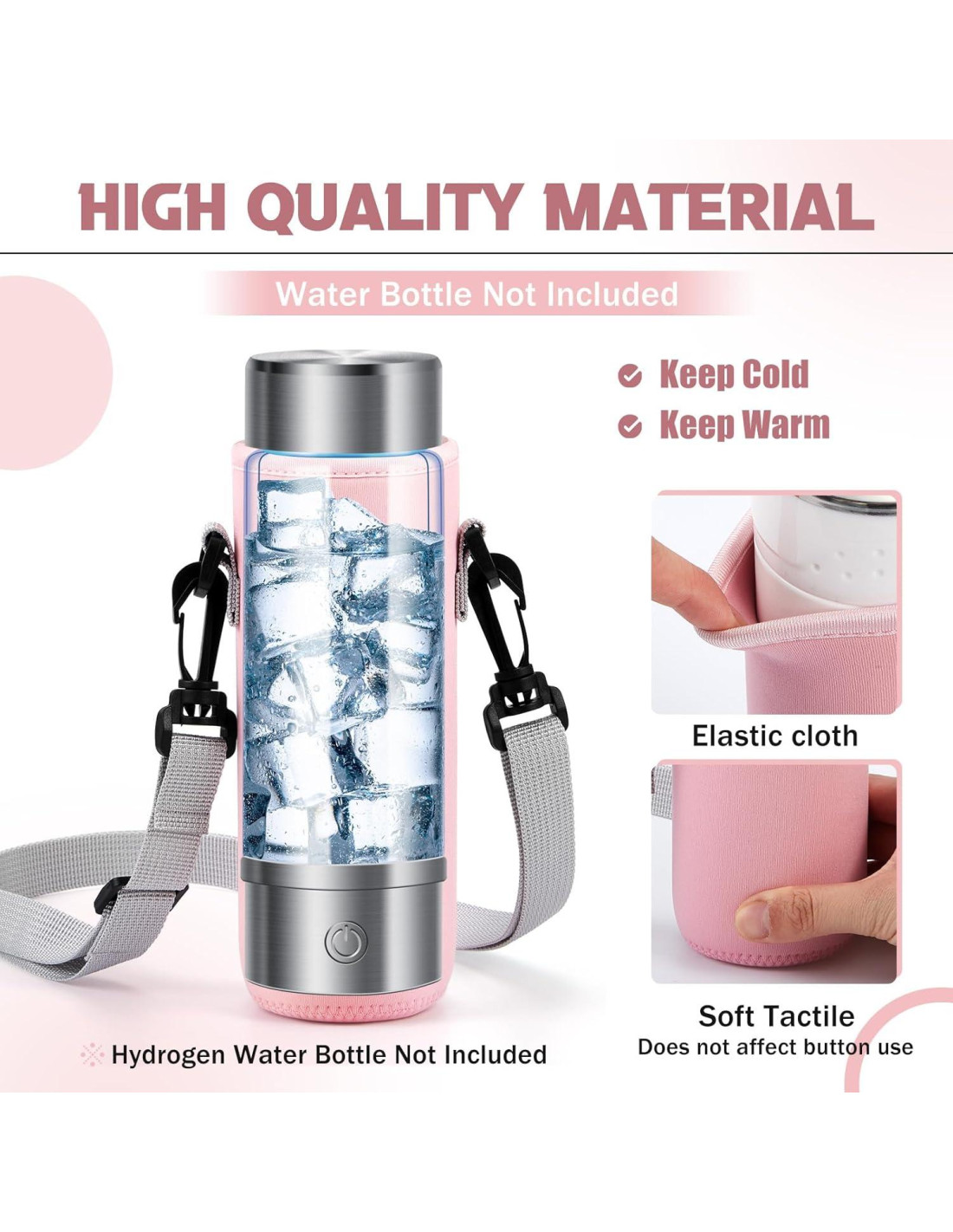 - Protector y Conveniente: este portador de botella de agua de hidrógeno con correa está hecho con características de preservación de calor y ofrece protección contra la pérdida de calor; Esto asegura que tu agua permanezca a la temperatura adecuada por más tiempo, aplicable ampliamente a varios escenarios como viajar, hacer ejercicio, senderismo y uso diario