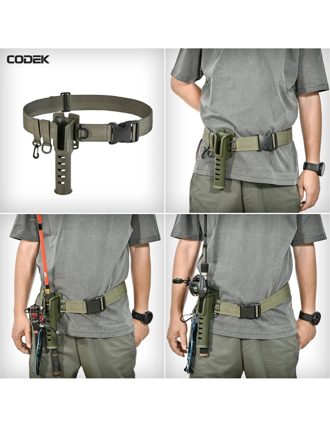 - El cinturón ensanchado: El cinturón CODEK tiene un ancho de 4.7 cm (1.85 in), que es más ancho que la mayoría de los cinturones que son de 3.5 cm (1.41 in), por lo tanto, es más estable cuando tu caña está pesada con un pez grande.
