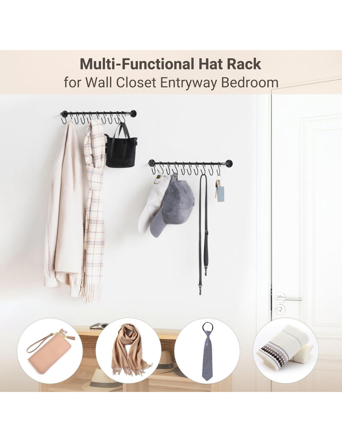 - Gran Capacidad de Soporte para hasta 20 Gorras: Este organizador de sombreros para pared viene con 20 ganchos "S" resistentes a la corrosión, que pueden sostener 20 gorras. Ideal para gorras snapback, viseras o sombreros con correas. Adicionalmente proporciona 10 clips "A" para satisfacer todas las necesidades de almacenamiento de sombreros.